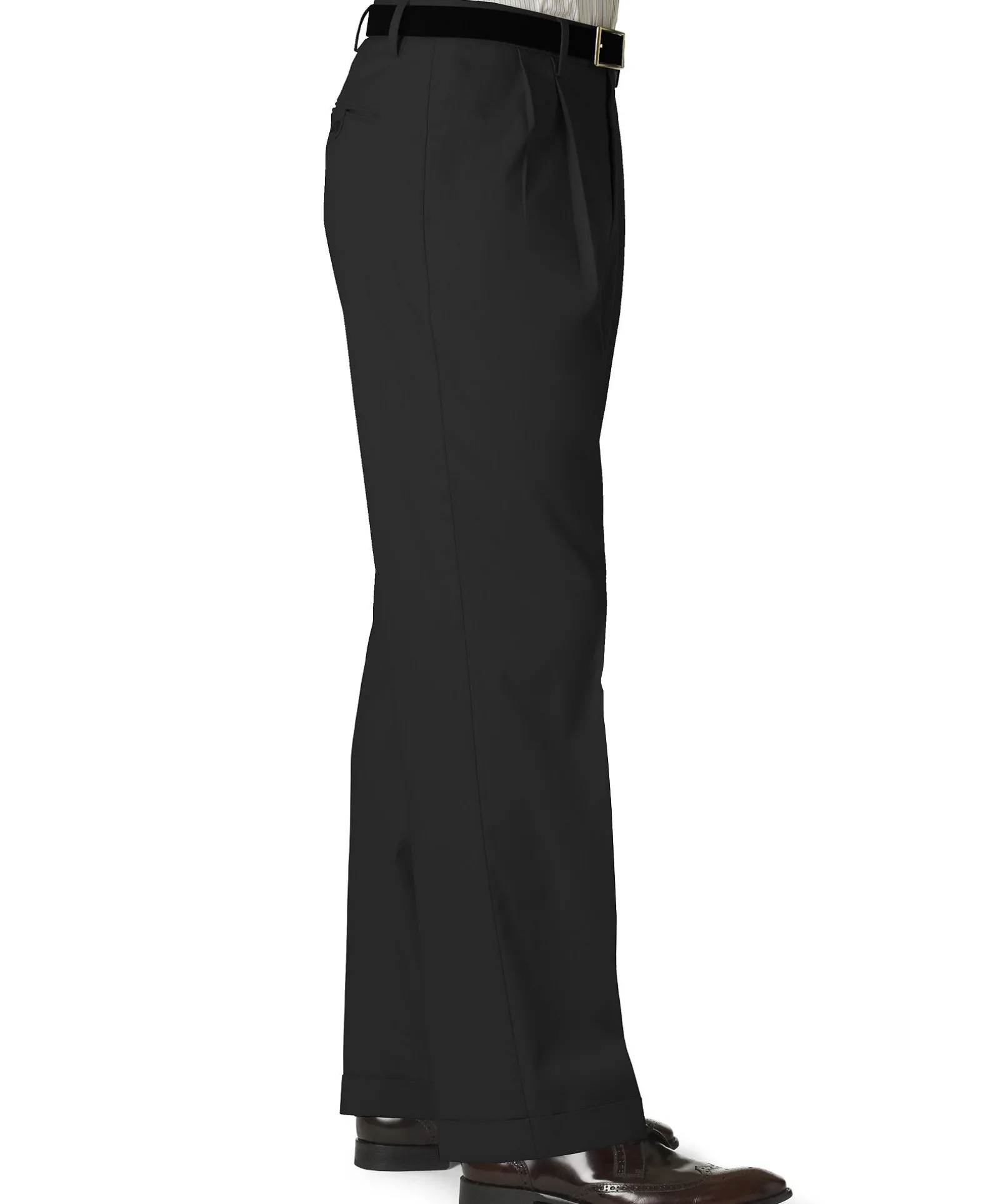 - Pleated dress pant featuring, side slant pockets, cuffed hem