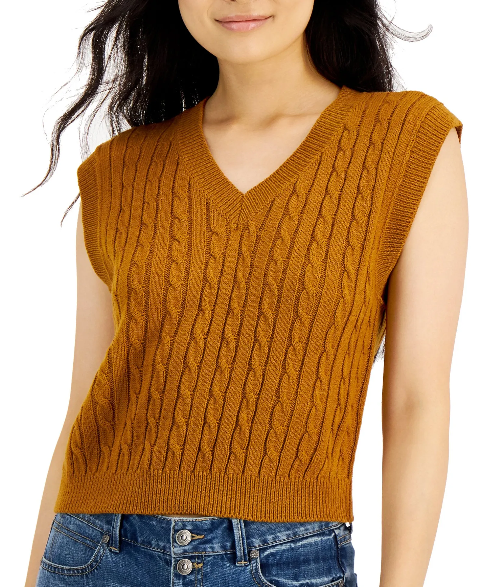 Hit The Hallways In This Cute Sweater Vest From Sugar Moon Designed With Playful Cable-Knit Detail.
