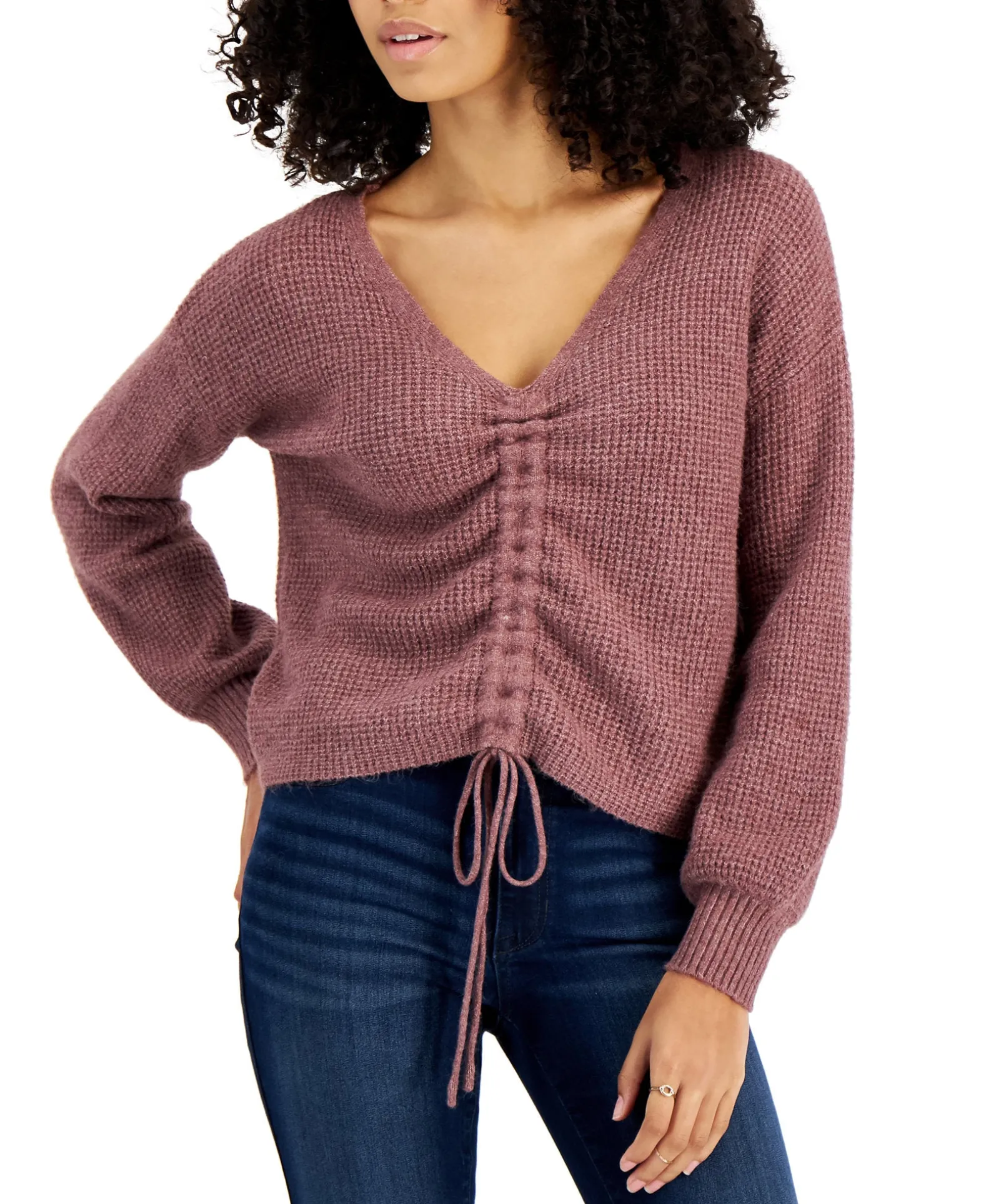 Updating Your Look Is A Cinch With Hippie Rose’s Drawstring Waffle-Knit Sweater. Slouchy But Still Sized Right, This One’s A Winner.