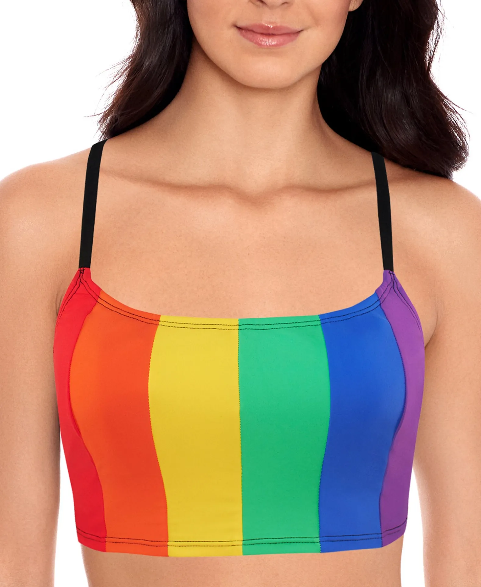 Make A Bright Splash For Your Beachy Looks With This Cropped Salt + Cove Bikini Top Featuring A Scoop Neckline And A Rainbow Of Stripes At The Front.