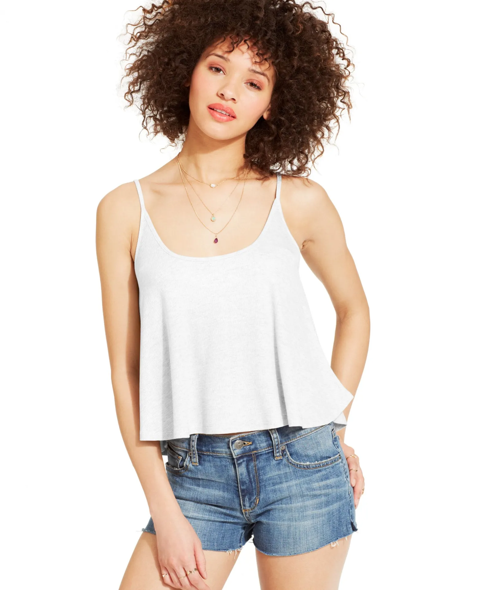 Ultra Flirt’s swingy cropped tank top is a cool way to survive hot days.