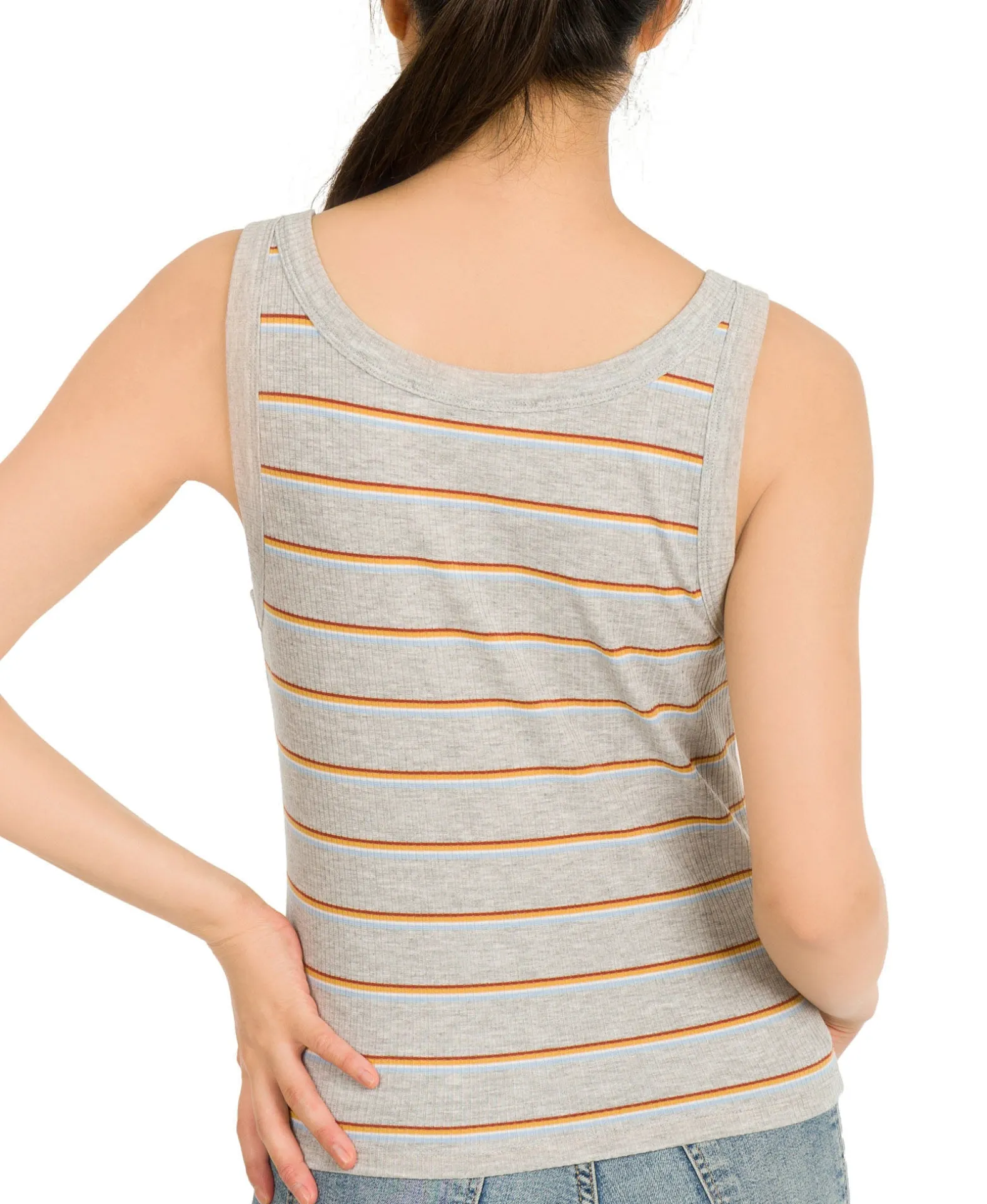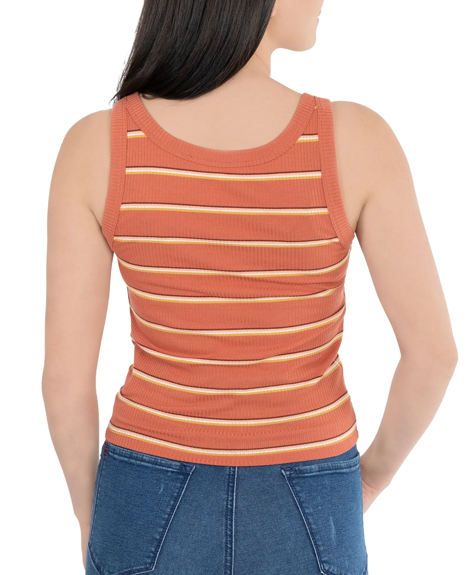 Hippie Rose Brings Versatility To Your Warm-Weather Wardrobe With This Striped Tank Top, Rendered In Rib-Knit Fabric And Featuring Solid Trim.