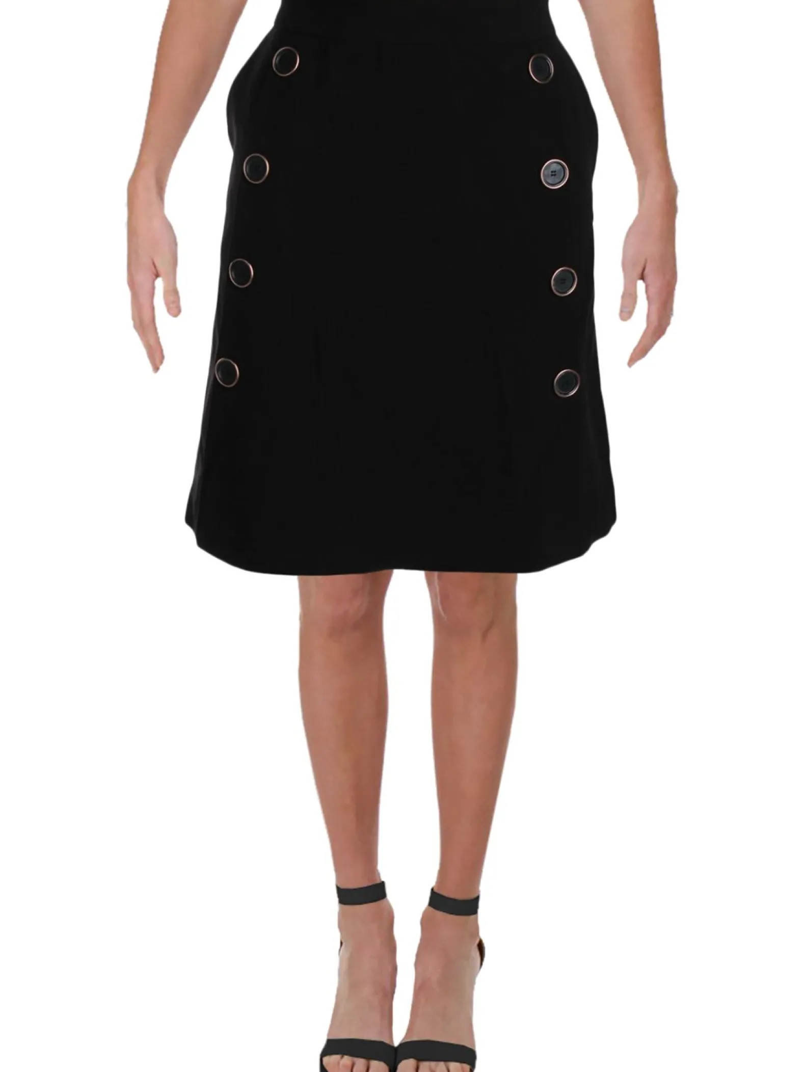 Ready to wear to the office or out for coffee with this A-Line skirt with button details accents.