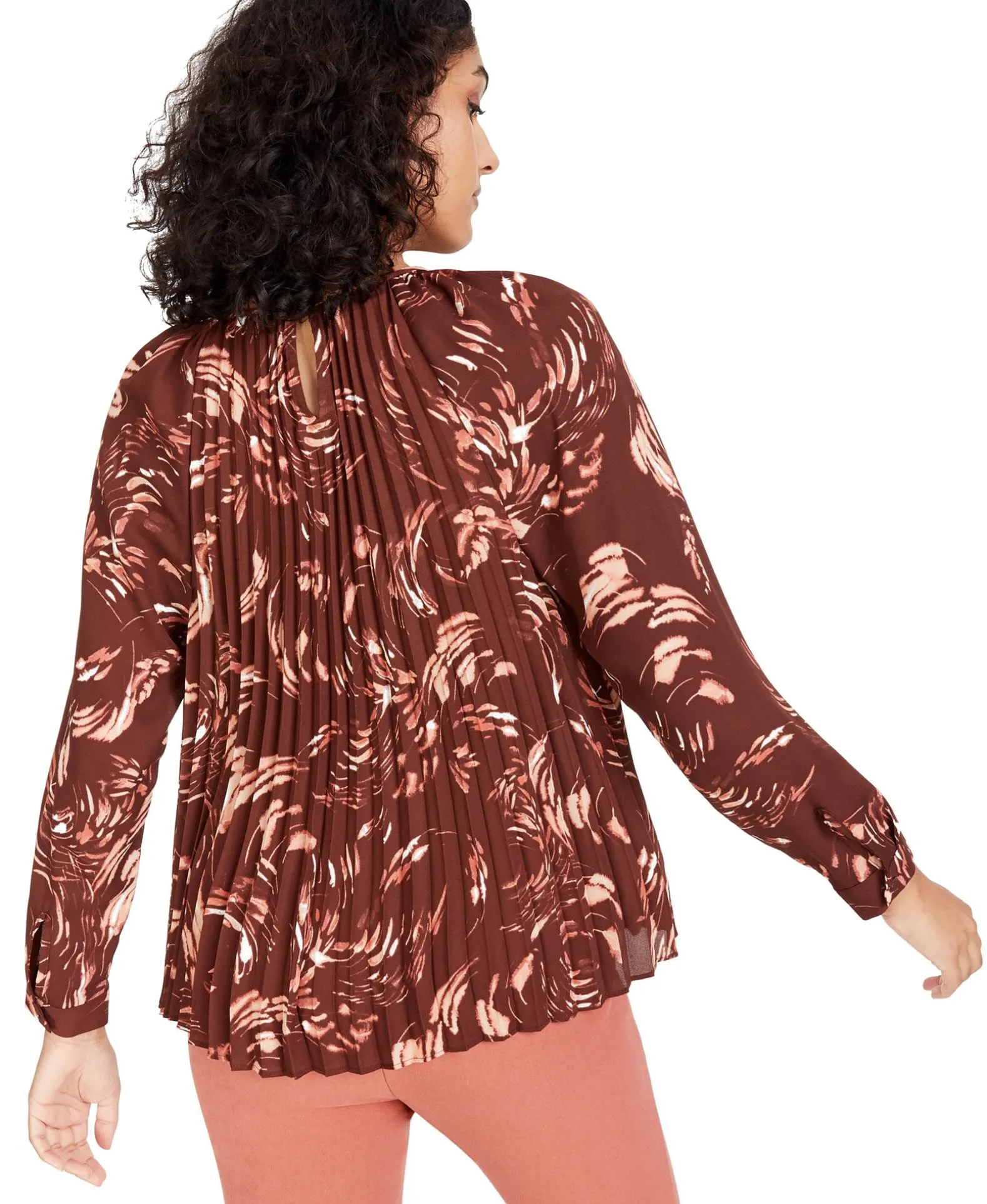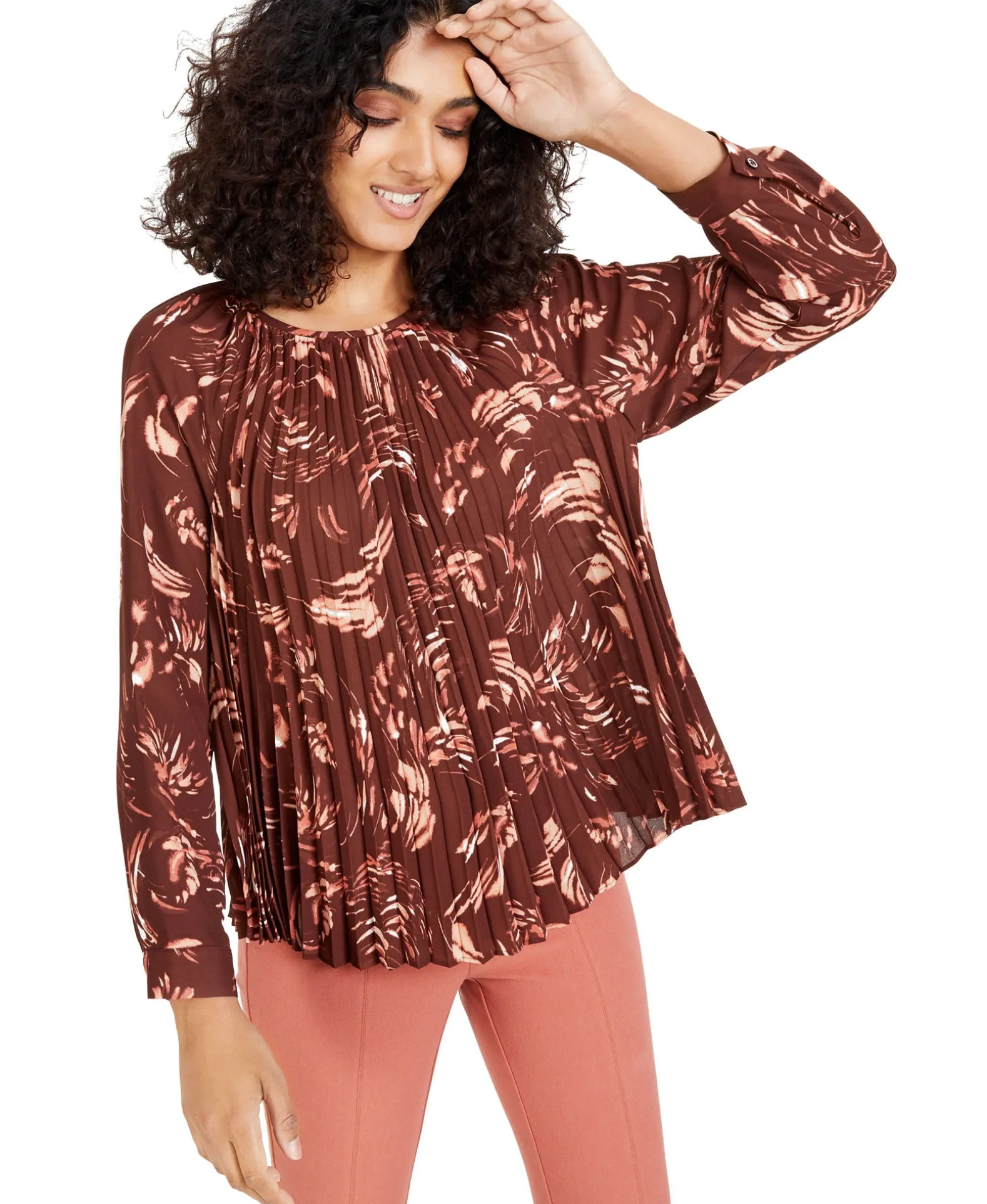 Polished Pleats Bring Dynamic Appeal To Alfani’s Scoop-Neck Top, A Sophisticated Style Decorated With A Painterly Print And Framed By Sleek Long Sleeves.
