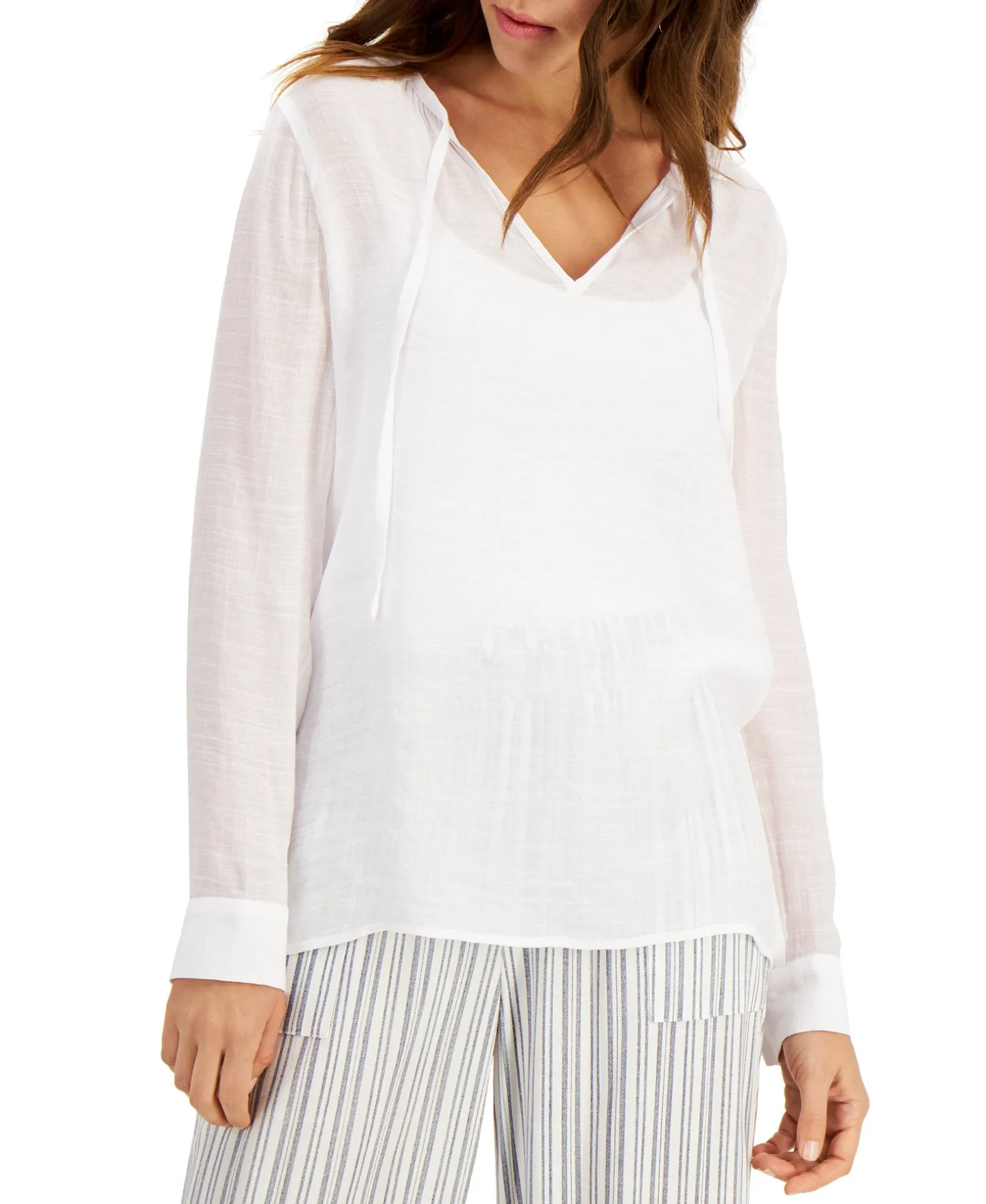 Semi-Sheer Textured Gauze And Button Trim Make This Blouse From Palette A Refreshing Addition To Your Casual Wardrobe.