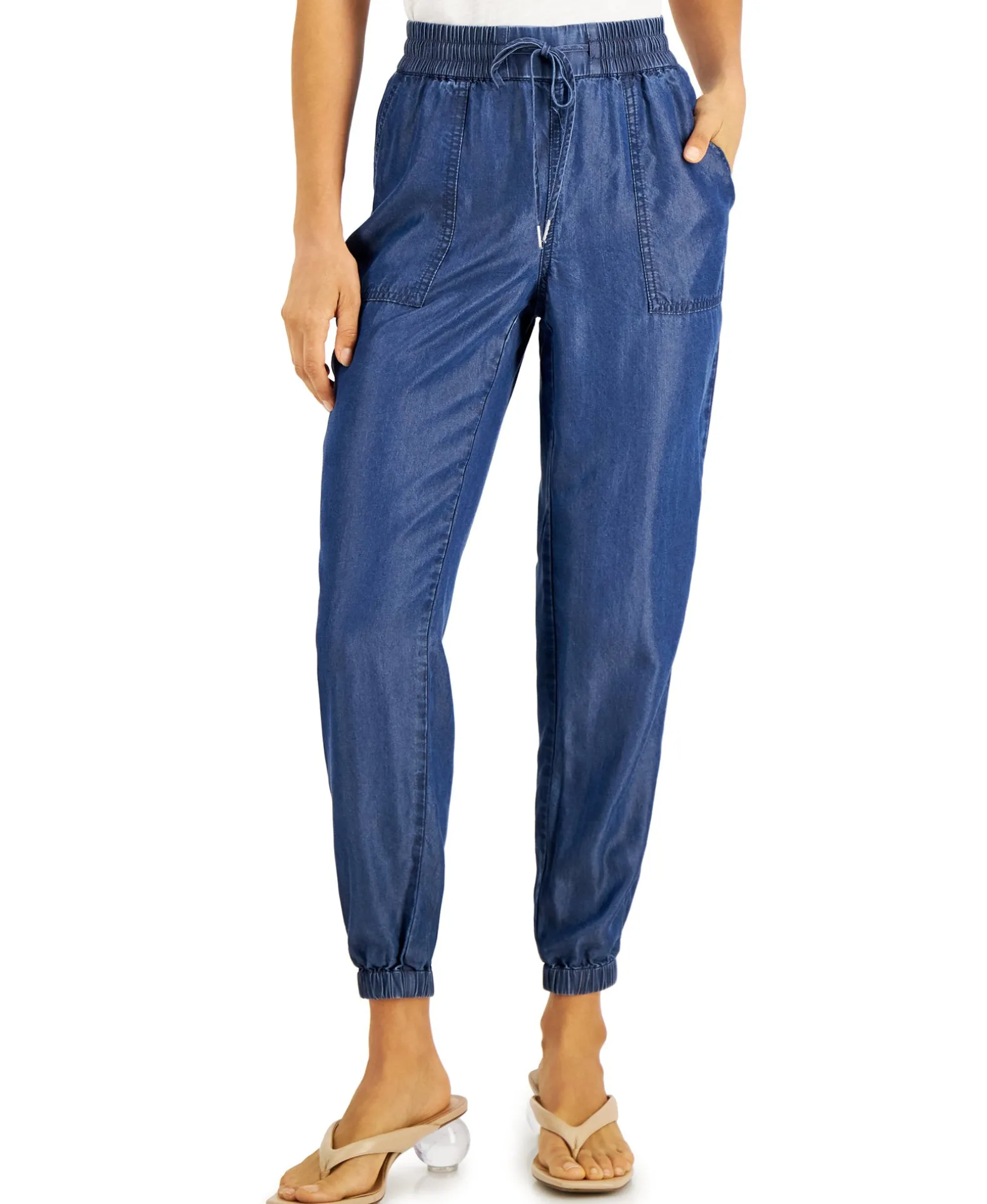 Revamp Your Work-Approved Look With These Chambray Jogger Pants From Bar III Designed With A Tapered Silhouette And Drawstring Waistband.