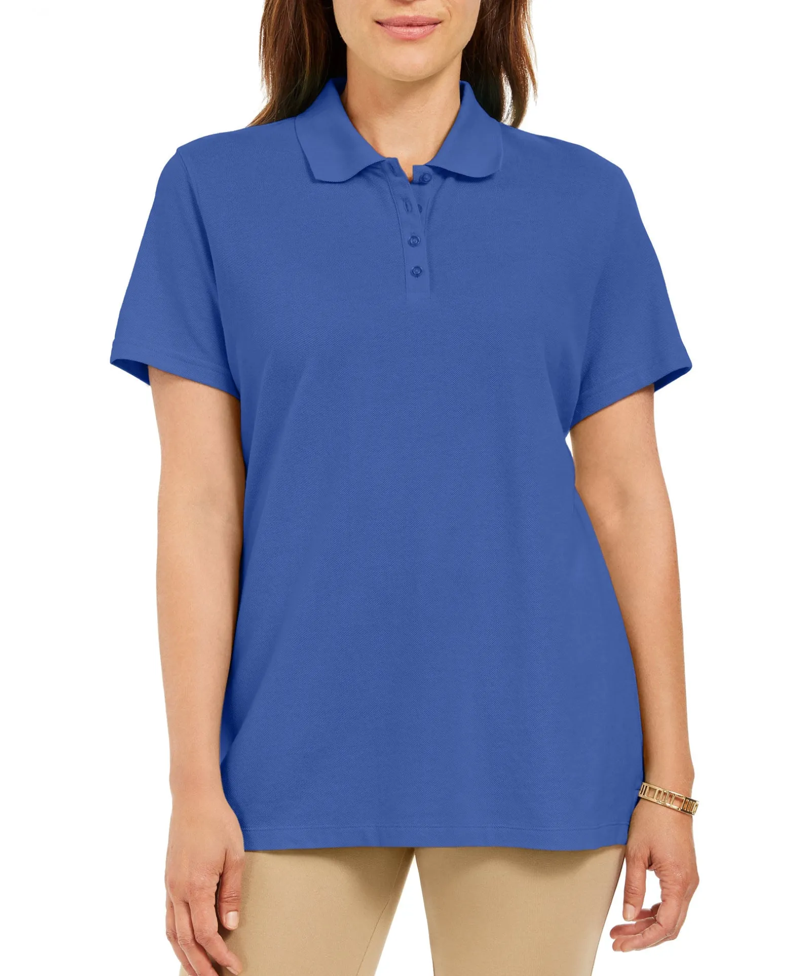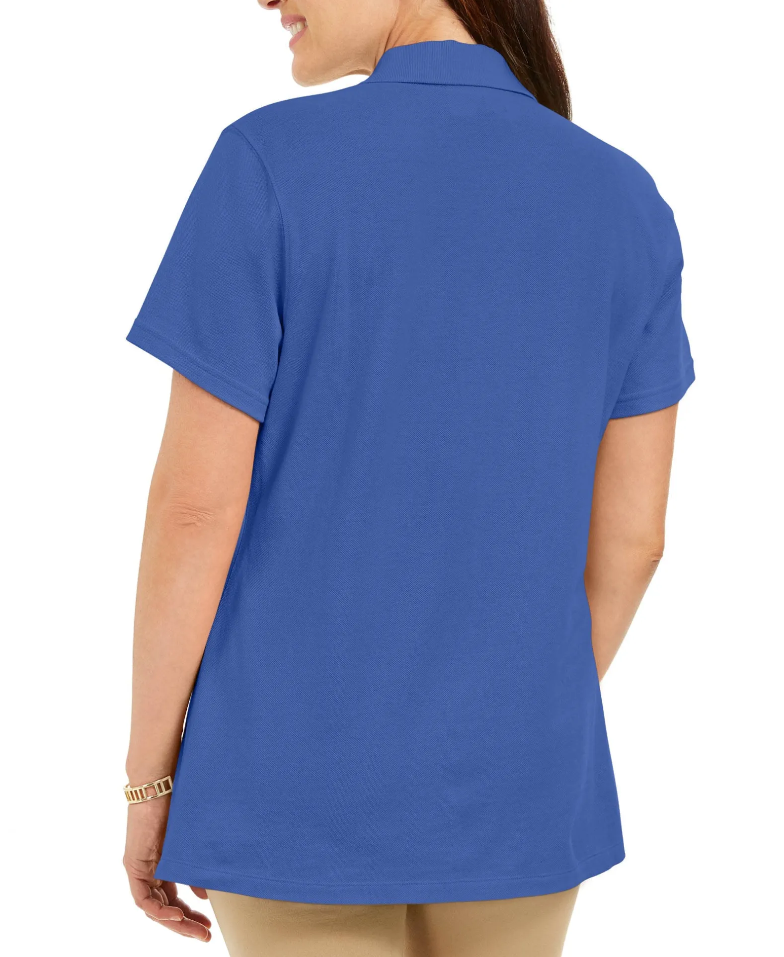 In Crisp Cotton, Karen Scott’s Knit Top Features A Polo Collar For Added Polish.