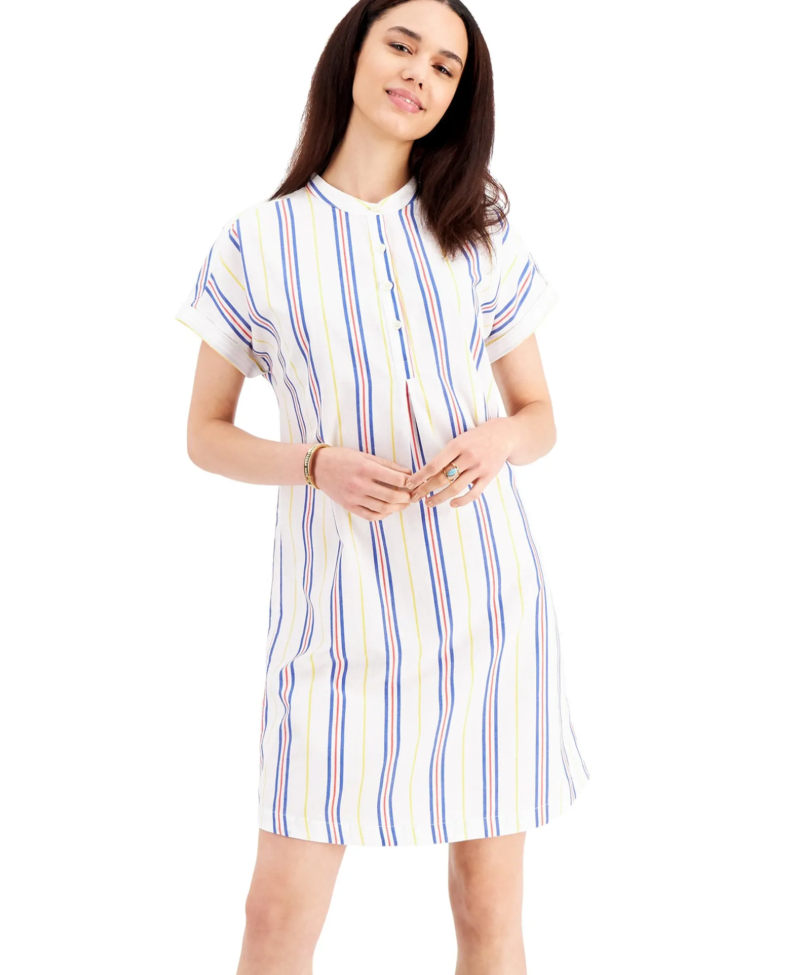 Style & Co Brings An Eye-Catching Pop Of Color To Your Wardrobe With This Cotton Shirtdress, Just In Time For Warmer Weather.