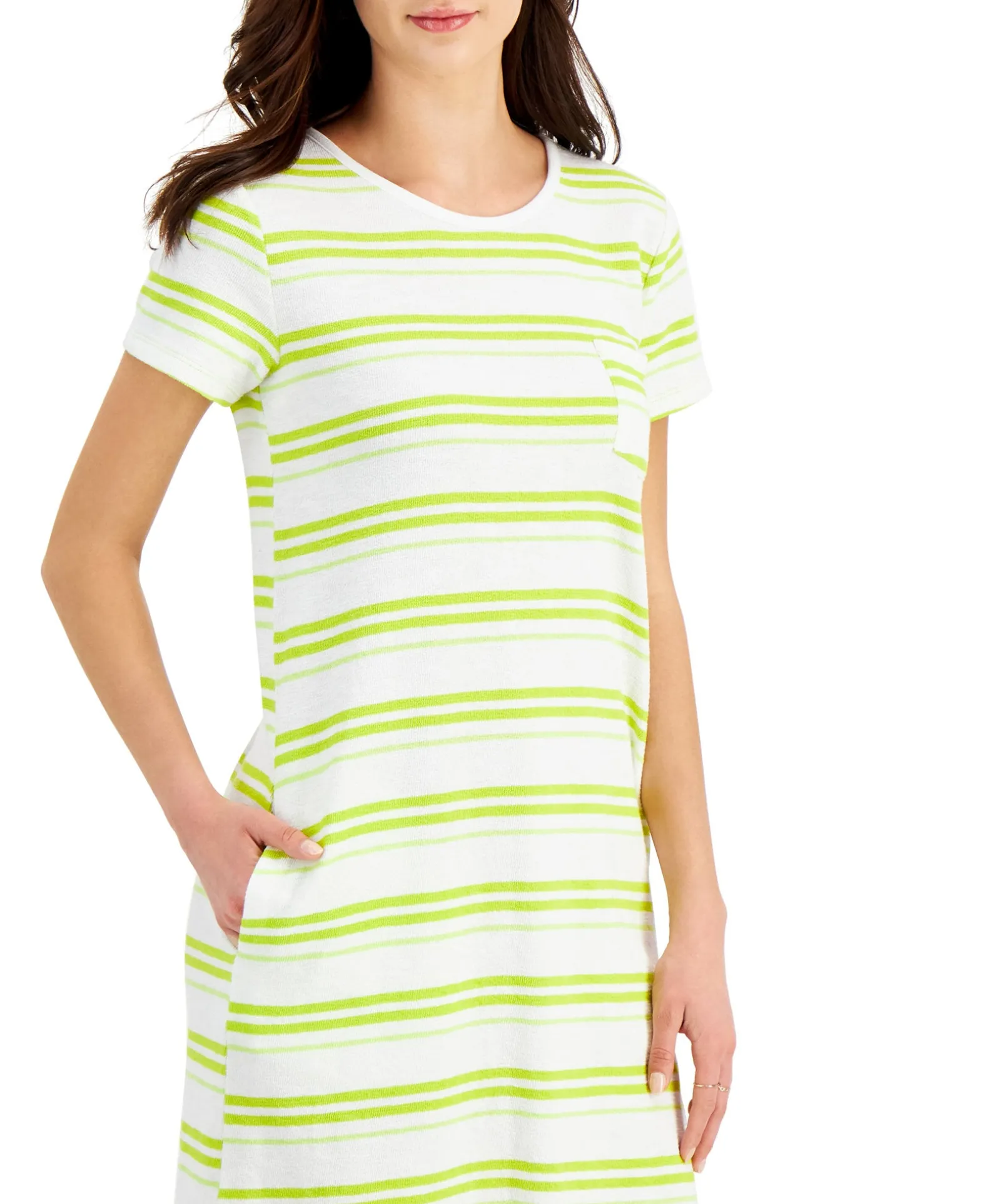 Style & Co’s Fresh Cotton T-Shirt Dress Is A Cute, Casual Pick Designed Entirely In Classic Stripes.