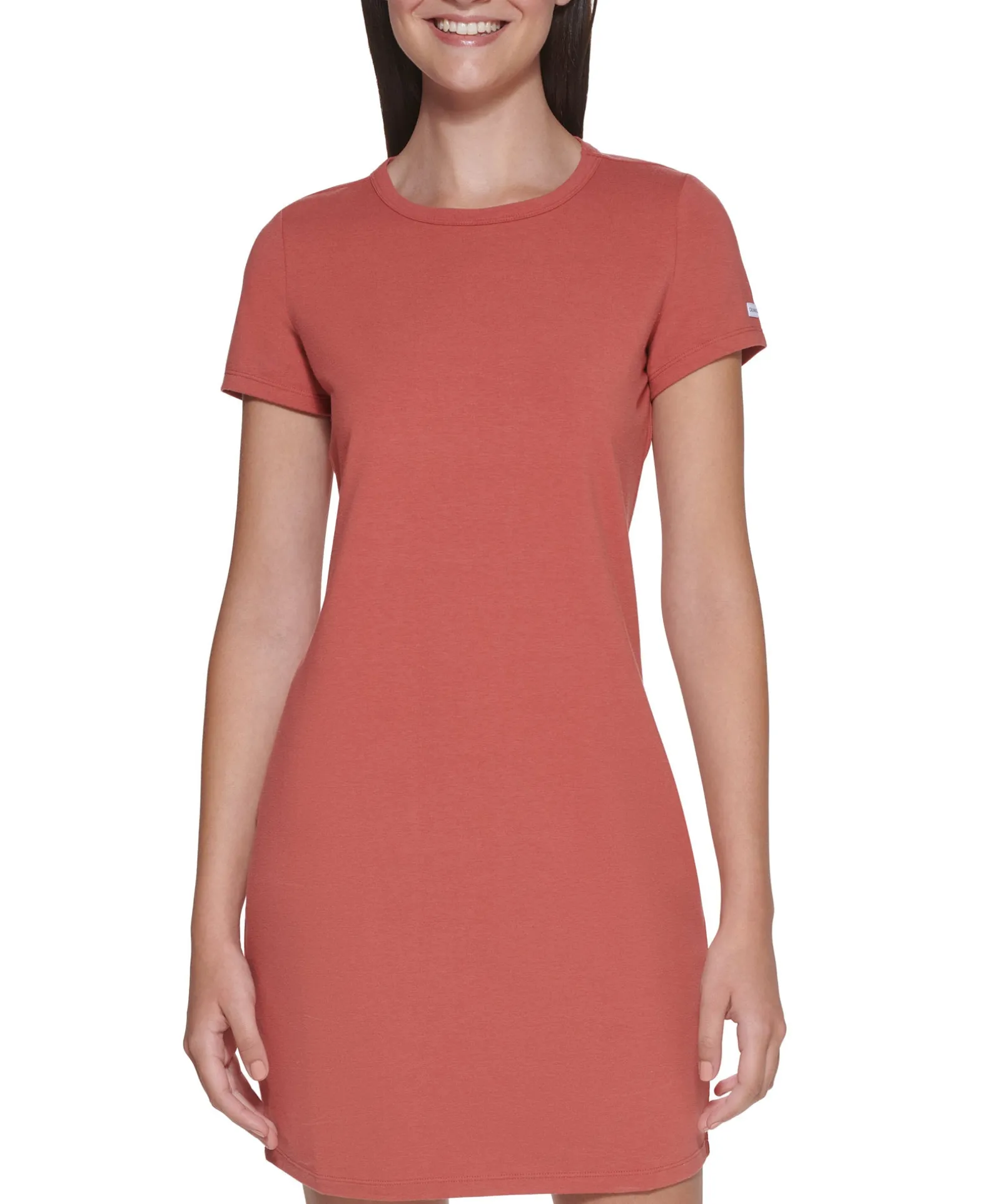 Update Your Casual Look In This Short-Sleeve Mini Dress From Calvin Klein Jeans, Designed To Pullover Effortlessly With A Crewneck.