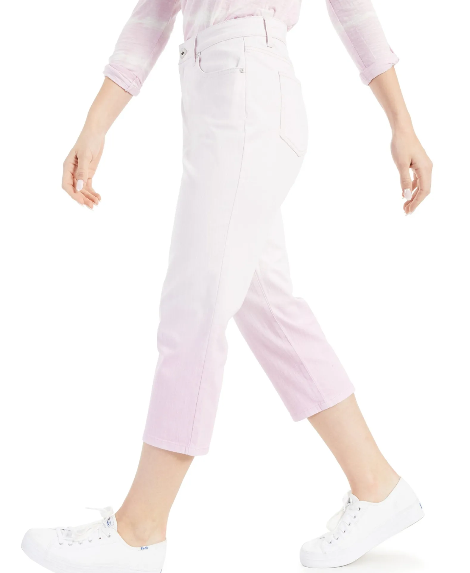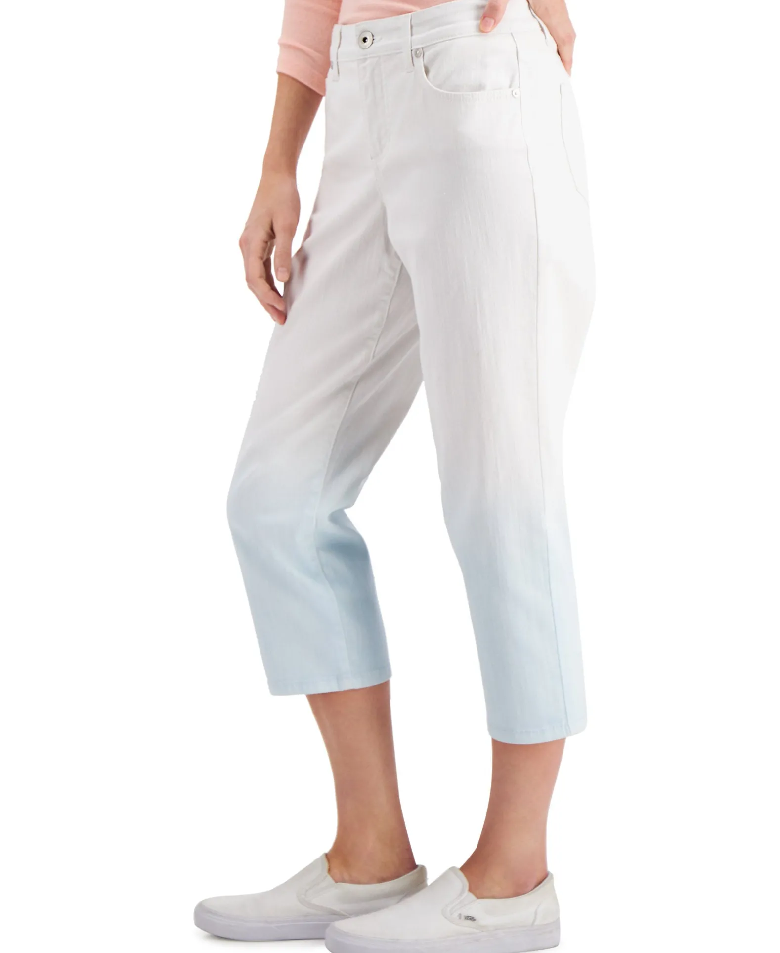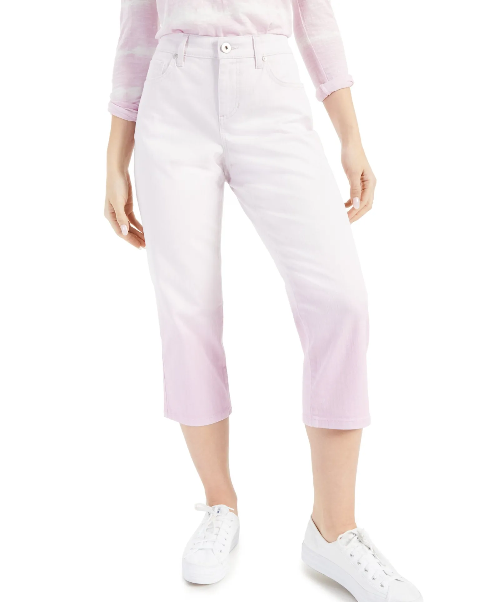 Dip-Dyed To Perfection For A Fresh Look, These Style & Co Stretch-Enhanced Denim Jeans Feature A Capri Length For Added Casual Charm.