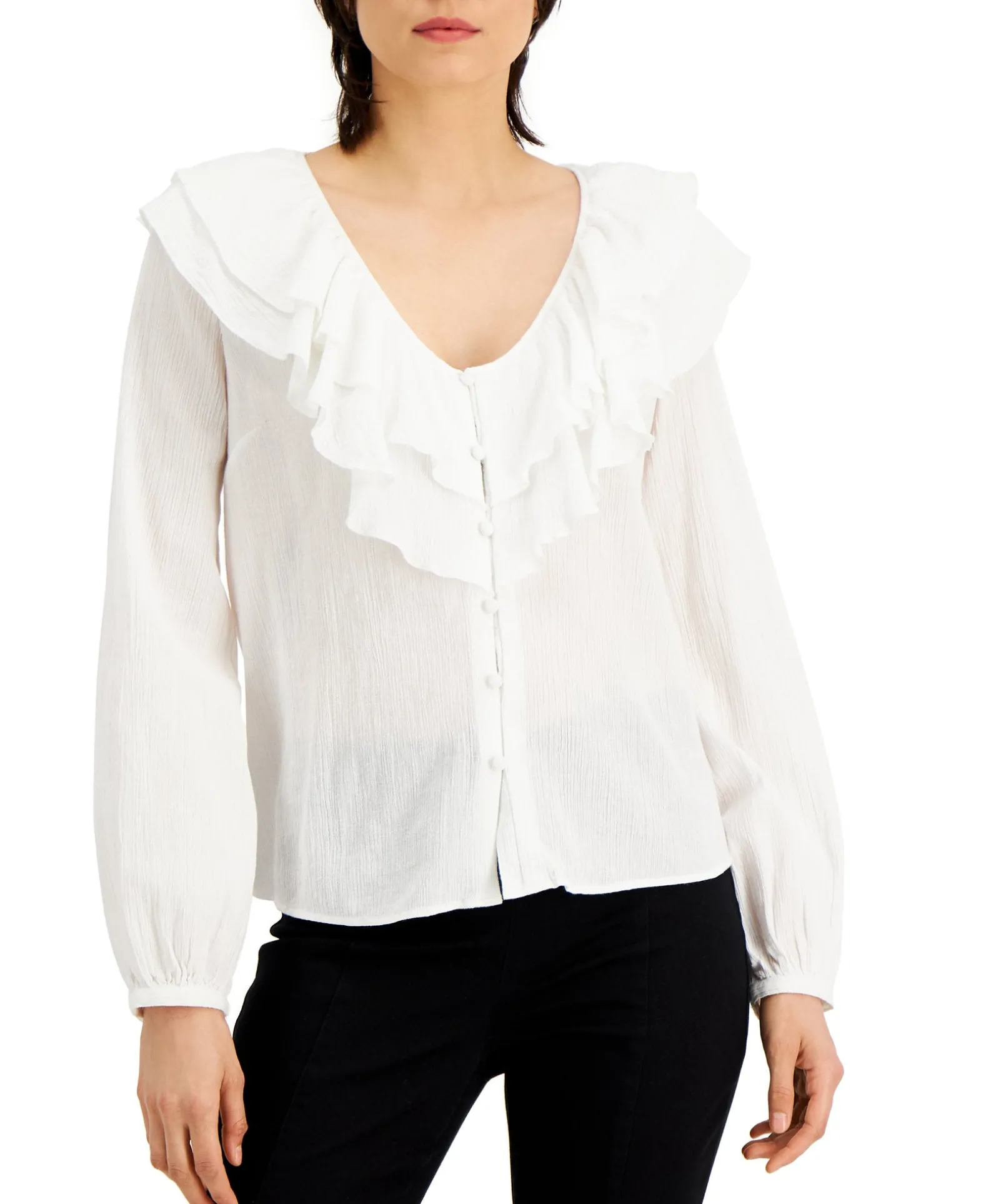 Big Bold Ruffles Add An Ultra-Femme Touch To This Breezy Cotton Top By INC International Concepts®.