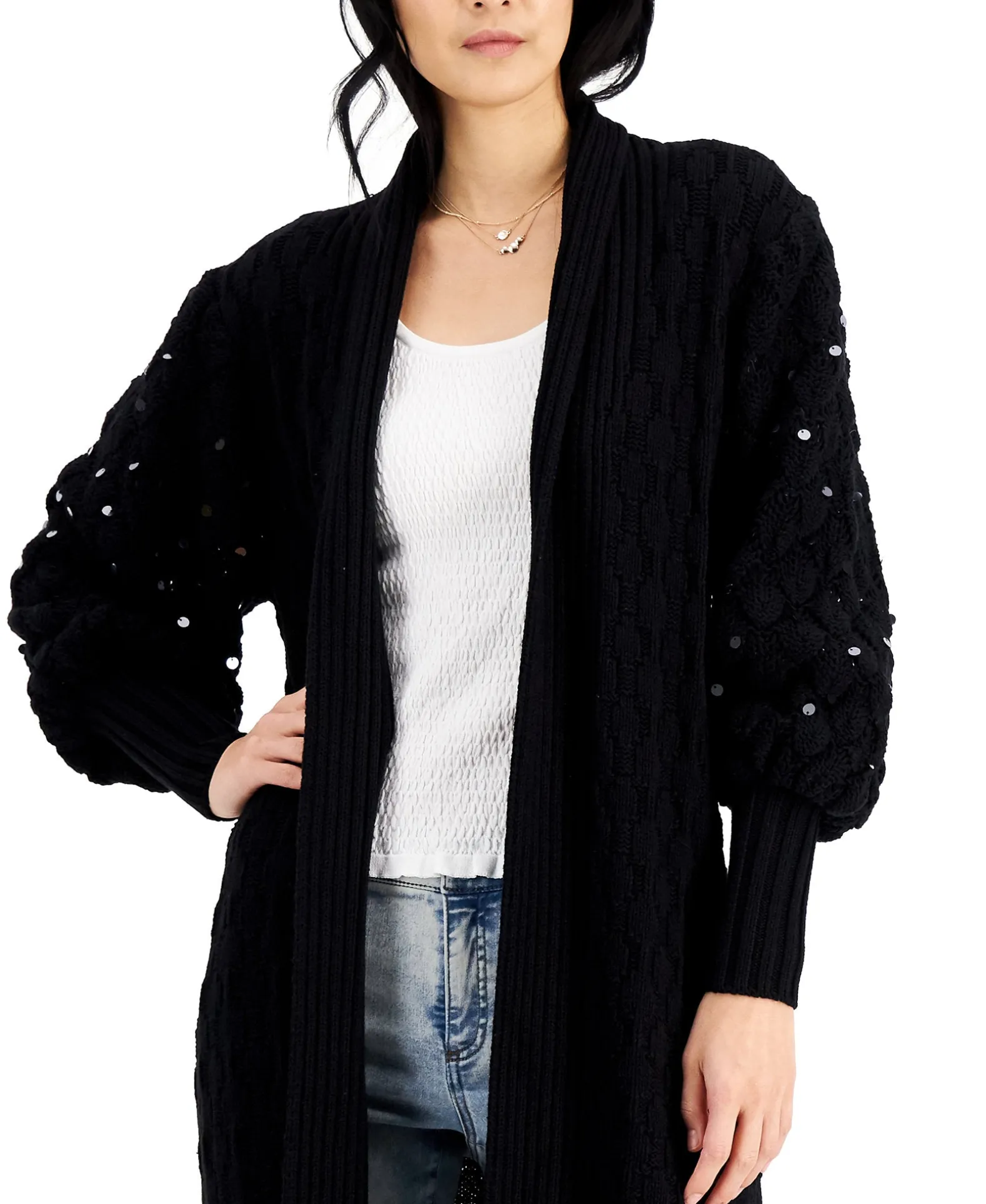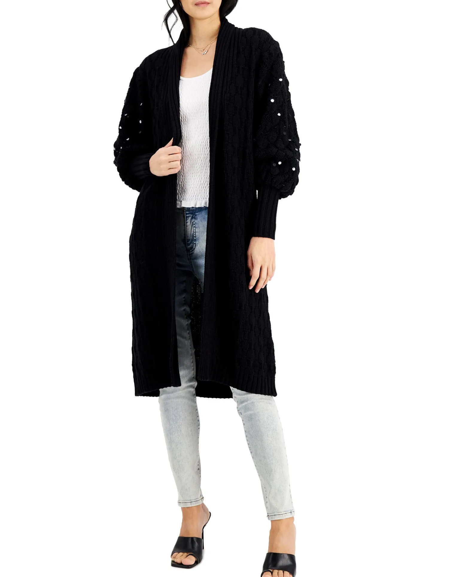 Studded With Sparkle, High-Volume Sleeves Frame The Elongated Shape Of This Chic Cardigan From INC International Concepts®.