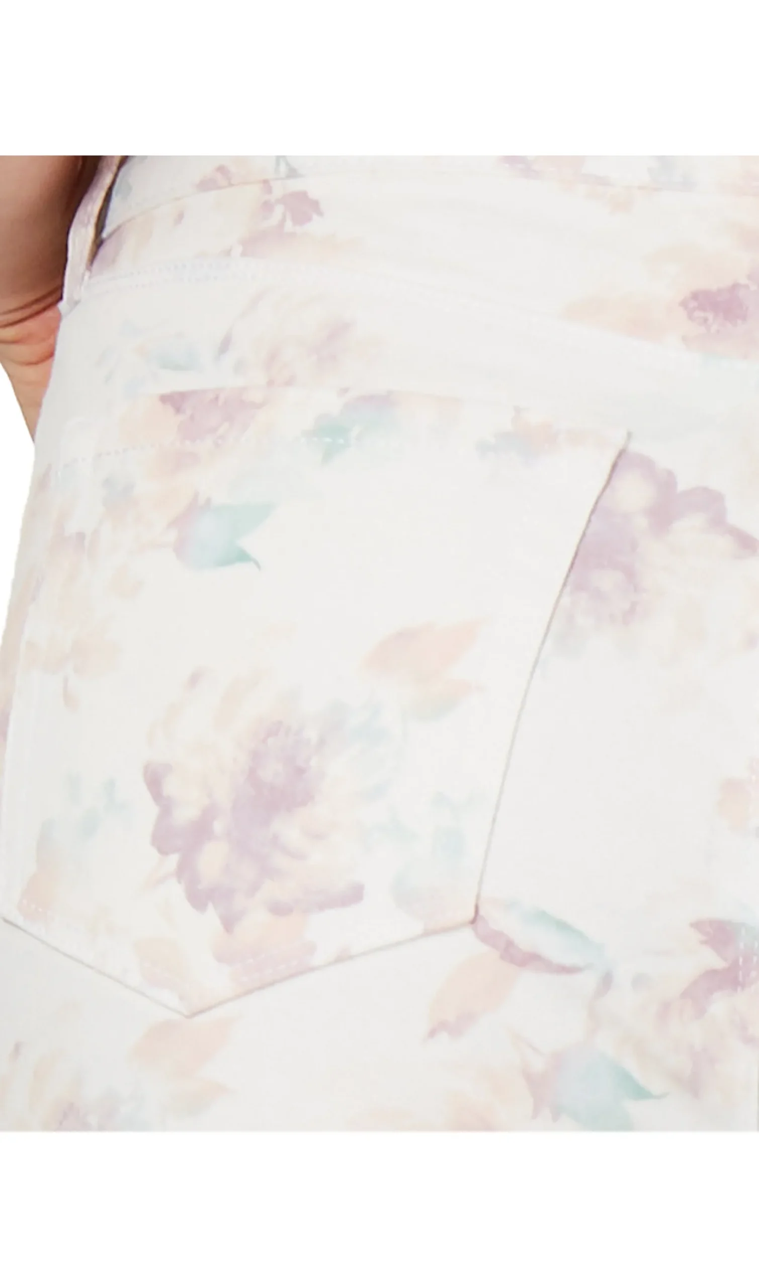 An allover watercolor floral print adds a special touch to these denim jeans from Style & Co, designed with a skinny profile and comfortable curvy fit.