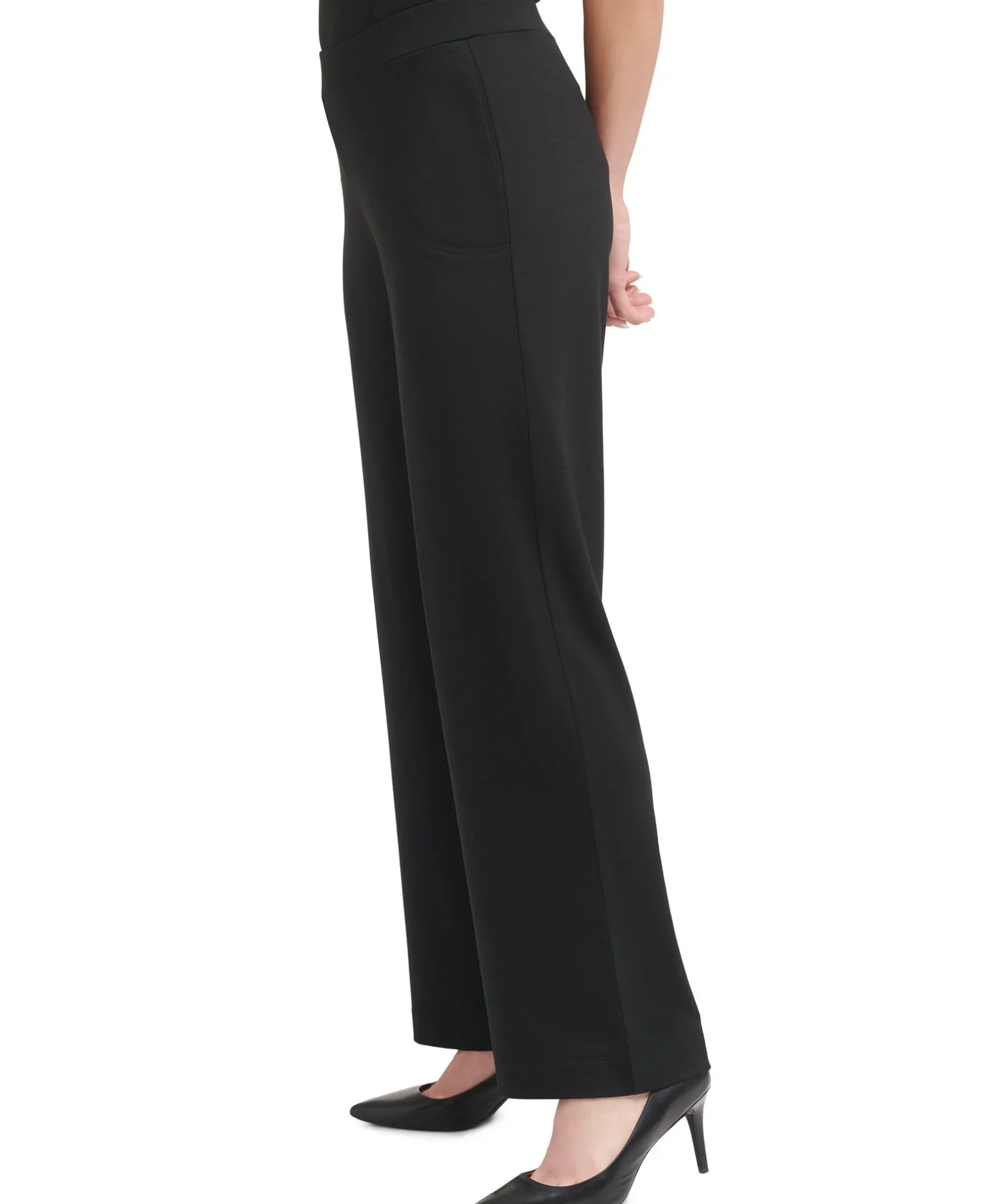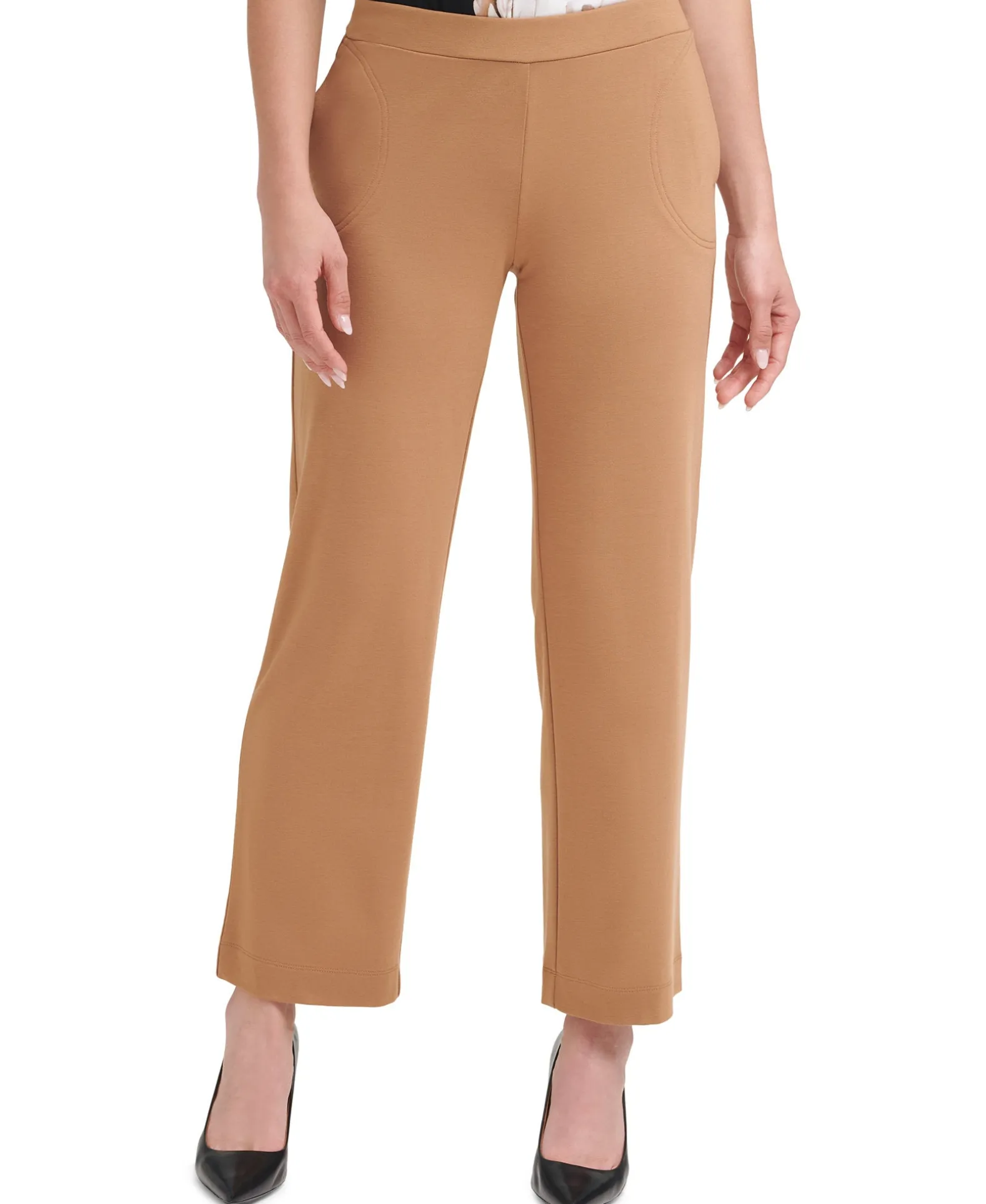 - Circular-seamed pockets at hips