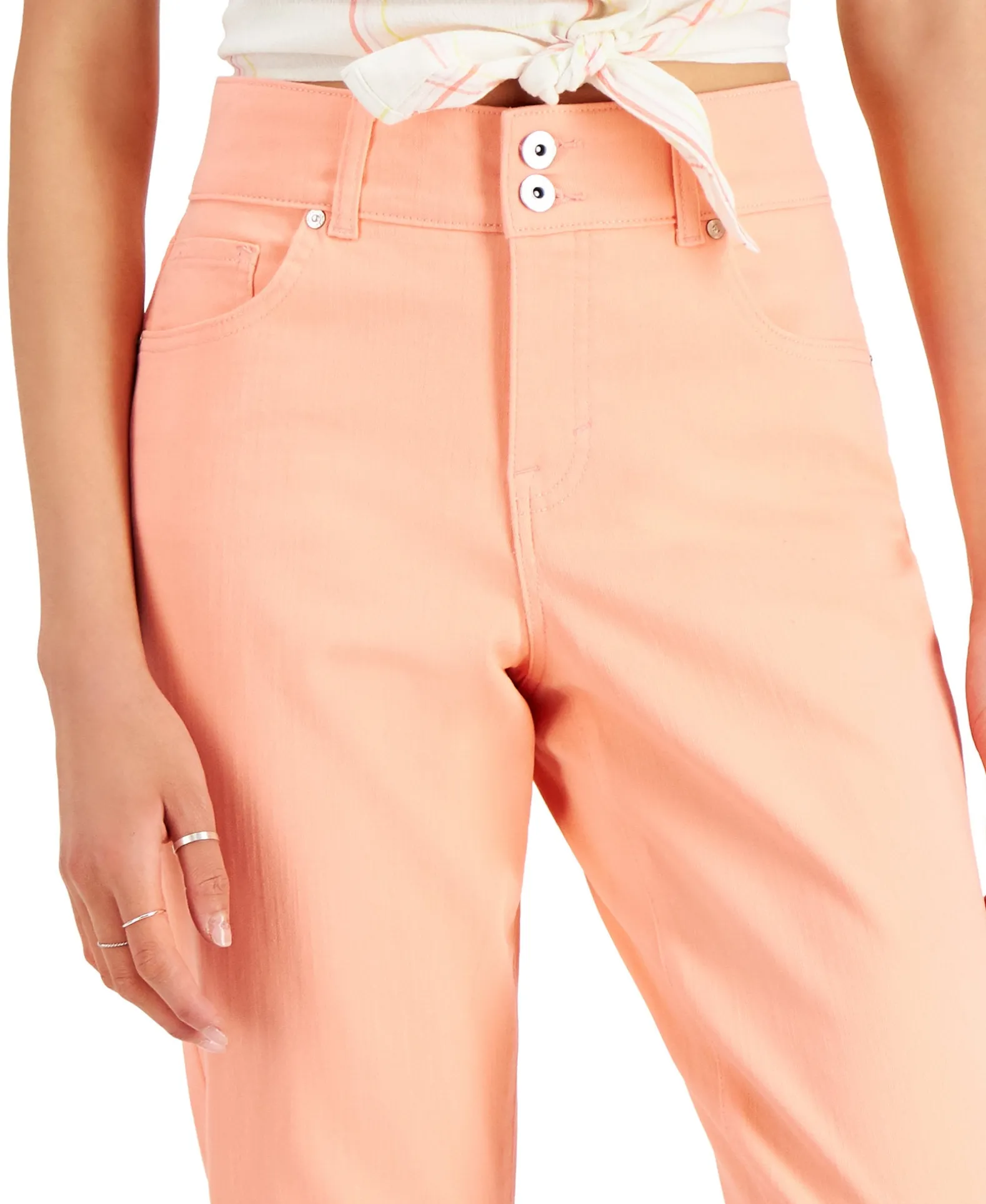 Style & Co gives the capri jeans look an exciting update with wide cuffs that pull the hem up to the calf. Small details, such as double buttons at the fly, enhance the appeal of these essential jeans.