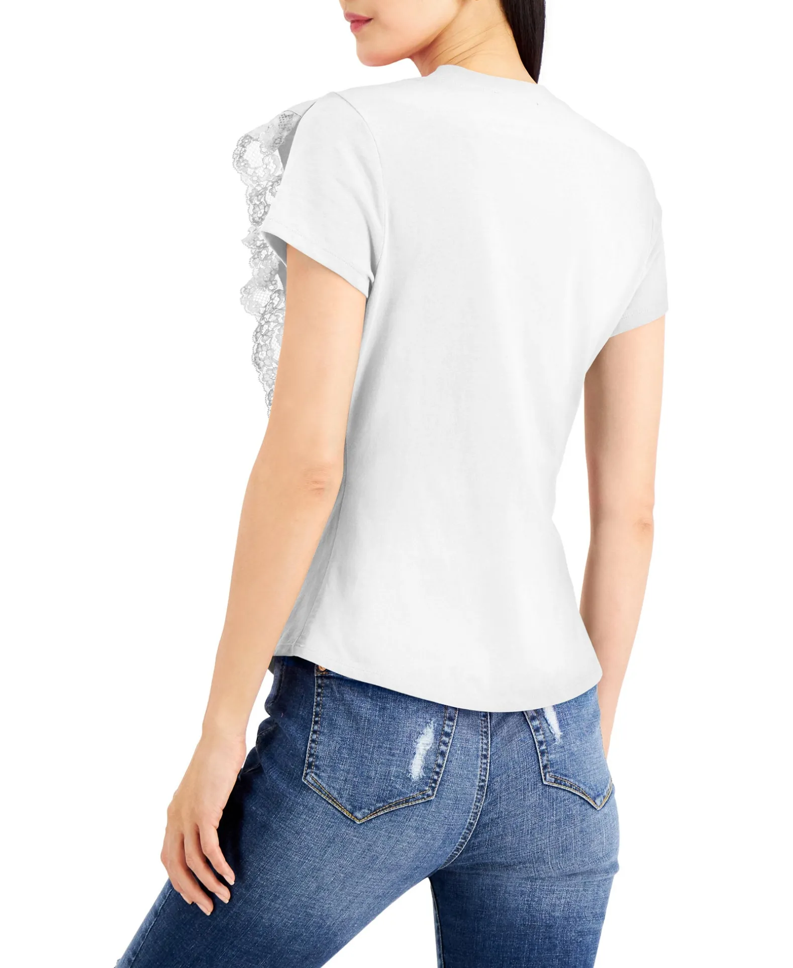 INC International Concepts® Takes Your Basic Tee To New Heights In Pretty With Lace-Ruffle Trim Details.