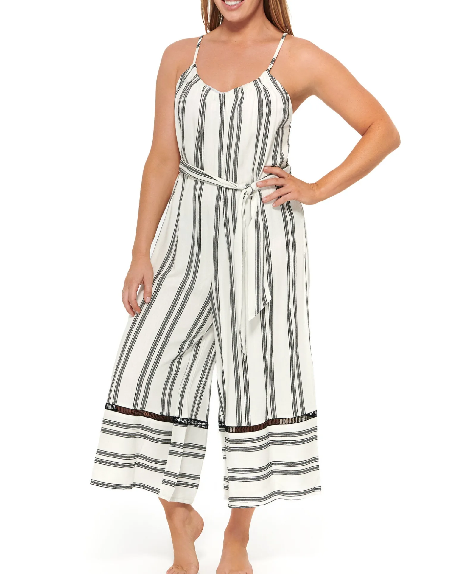 Dotti Creates A Fun And Stylish Way To Cover Up At The Beach With This Striped Jumpsuit That Features A Relaxed Silhouette And Adjustable Tie-Belt At The Waist.