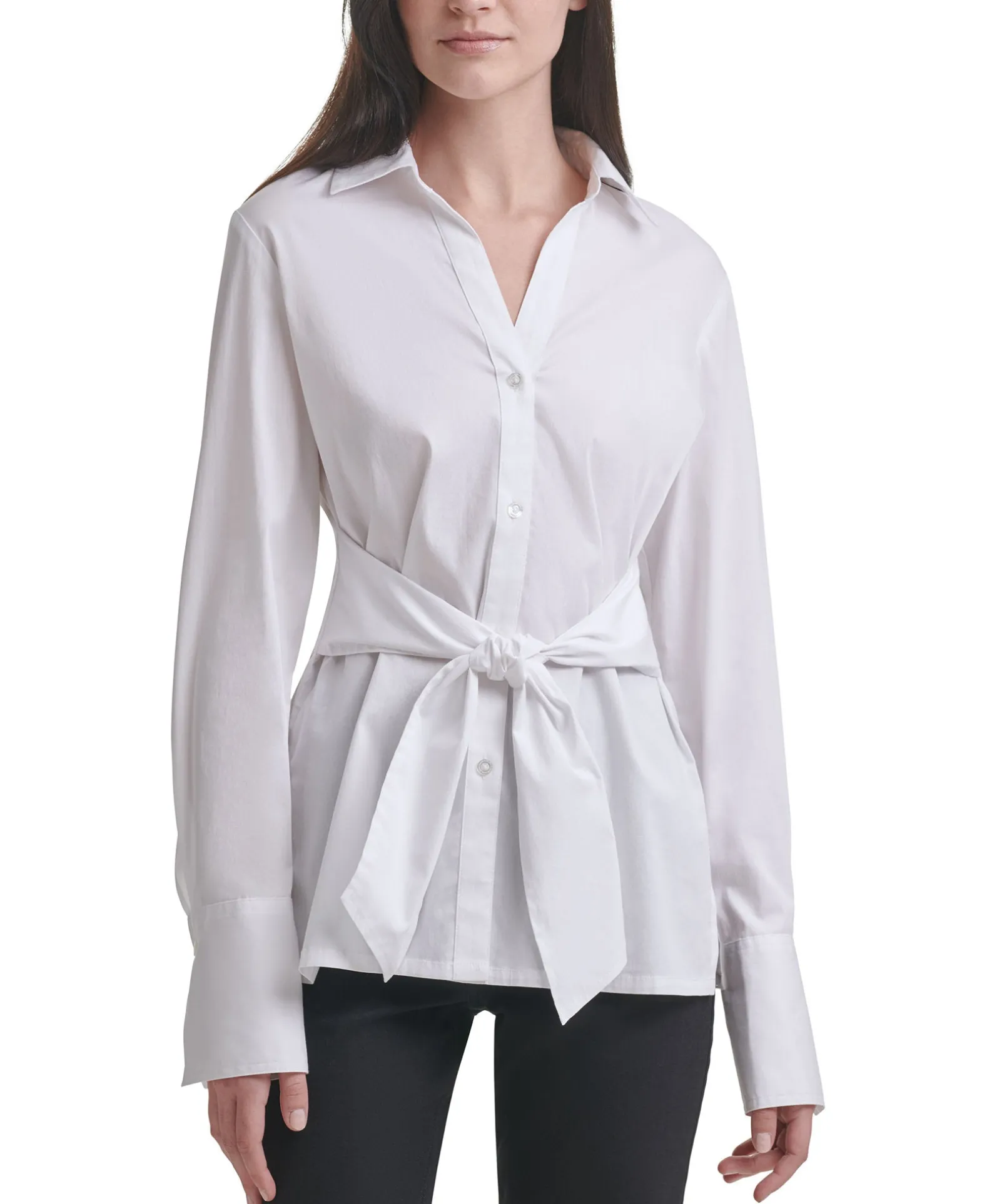 Earn Your Style Stripes In This Oversized Poplin Shirt From Calvin Klein Jeans Designed With Waist-Defining Tie.