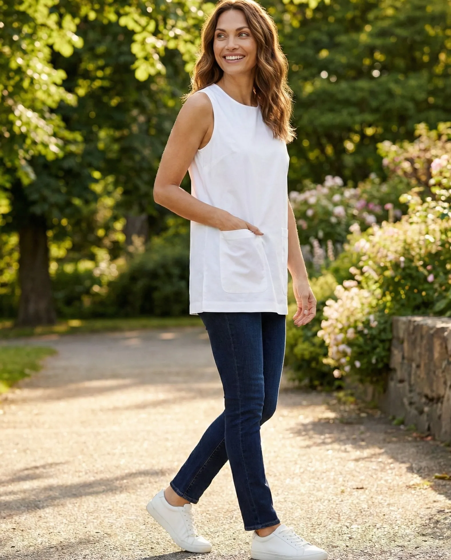 Handy Patch Pockets Grace The Front Of Alfani’s Crewneck Top, Offering Added Versatility To This Sleek Sleeveless Style.