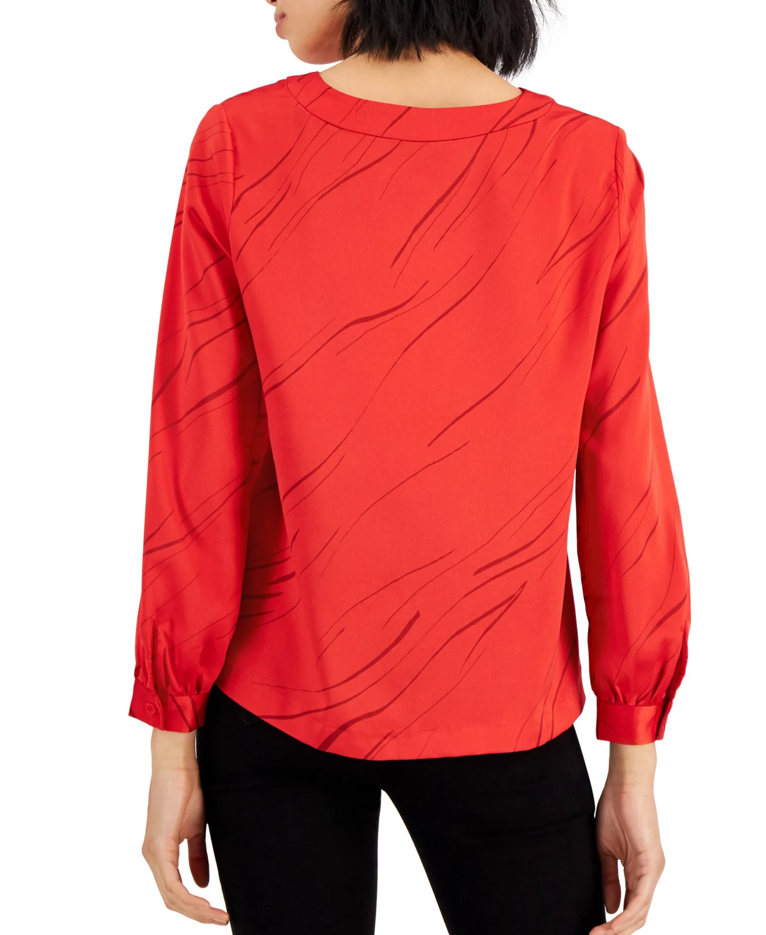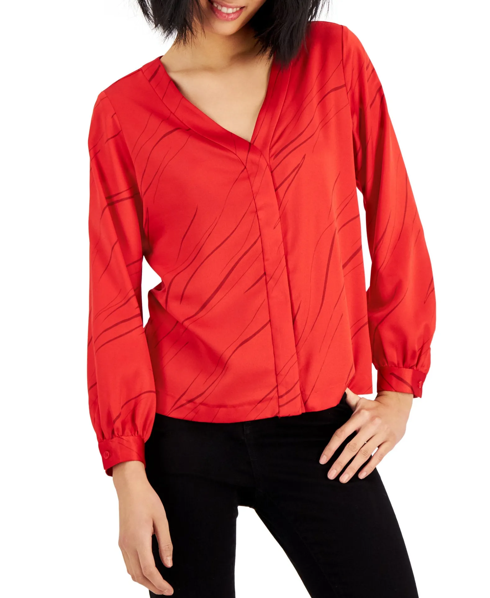 Printed With Slim Waves Of Tonal Shades, This Alfani Petite Blouse Brightens A Workday Wardrobe.