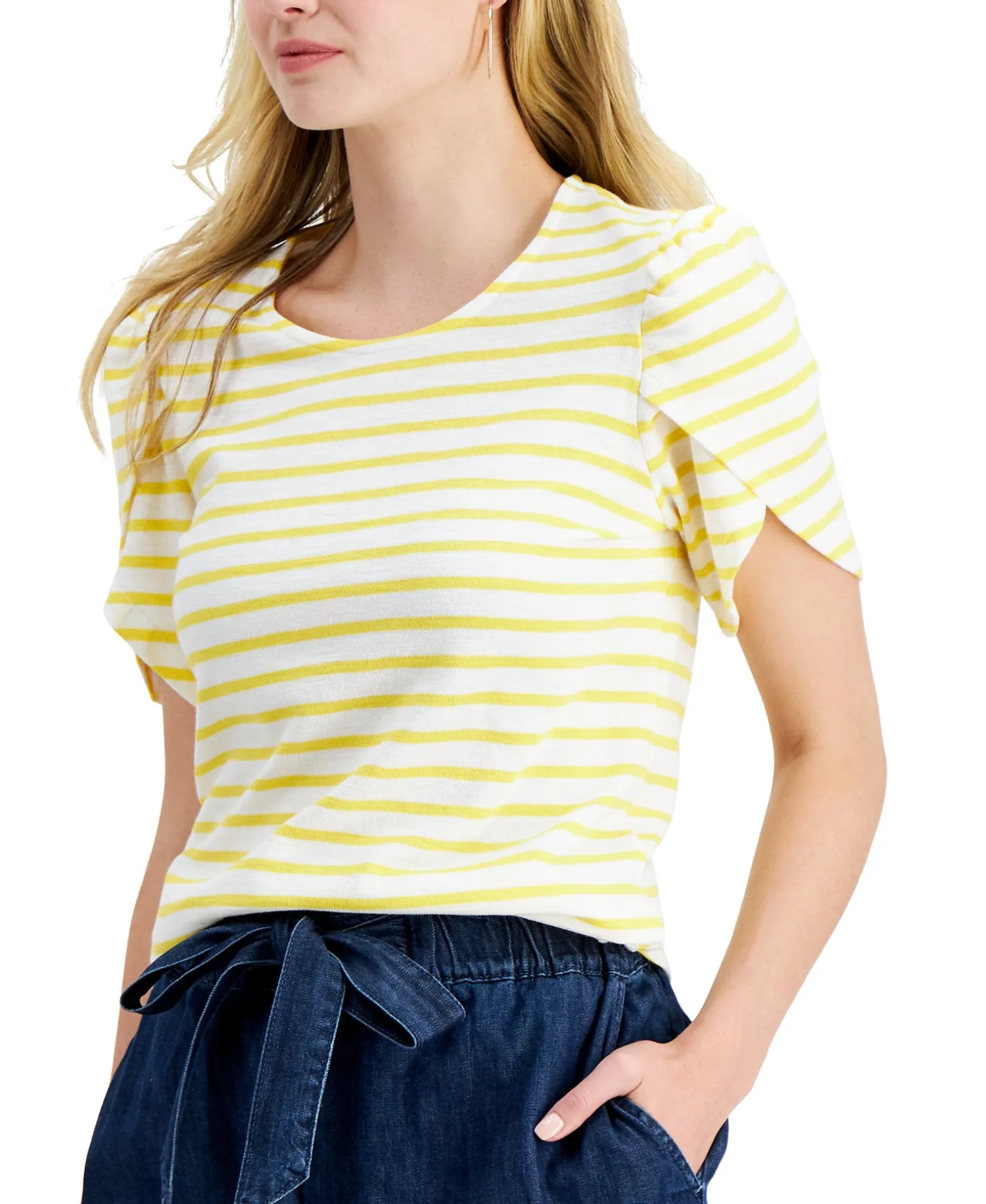 Crisp Stripes Are Always A Classic, And This Petite Cotton Knit Top From Charter Club Features Split Tulip-Style Sleeves For A Trend-Right Update.