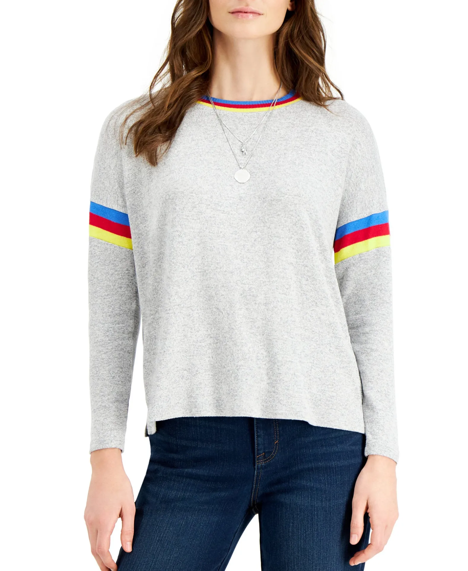 Contrasting Stripes Circle The Neckline And Sleeves On This Cute And Cozy Petite Sweater From Style & Co.