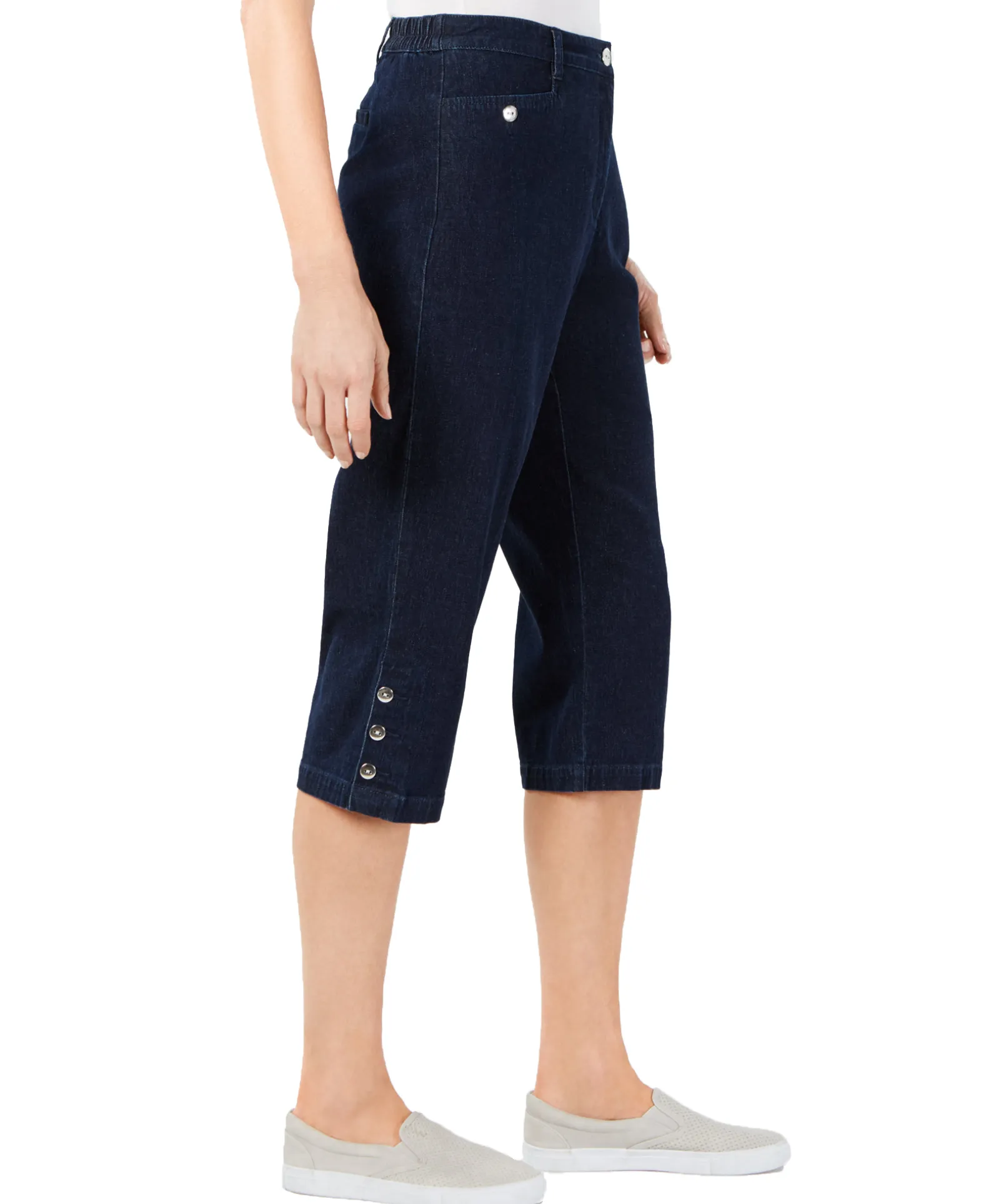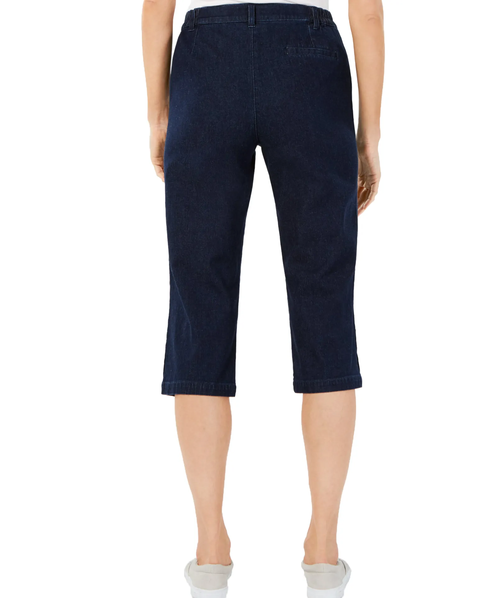 Classic Capri styling lends a polished look to this pair of denim cropped-hem petite pants from Karen Scott.