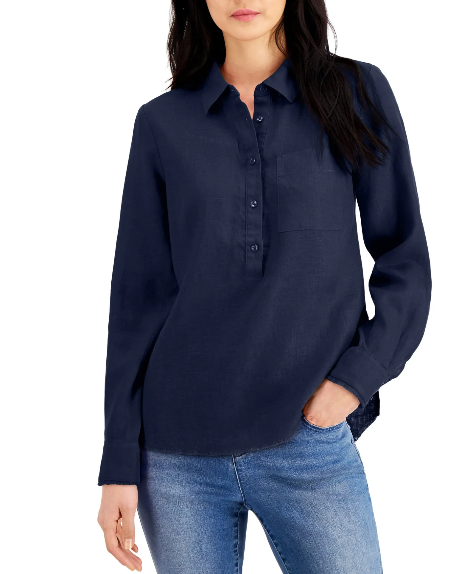 Keep It Light And Sophisticated In This Petite Linen Shirt From INC International Concepts®. Pair It With Shorts For Coastal Vibes.