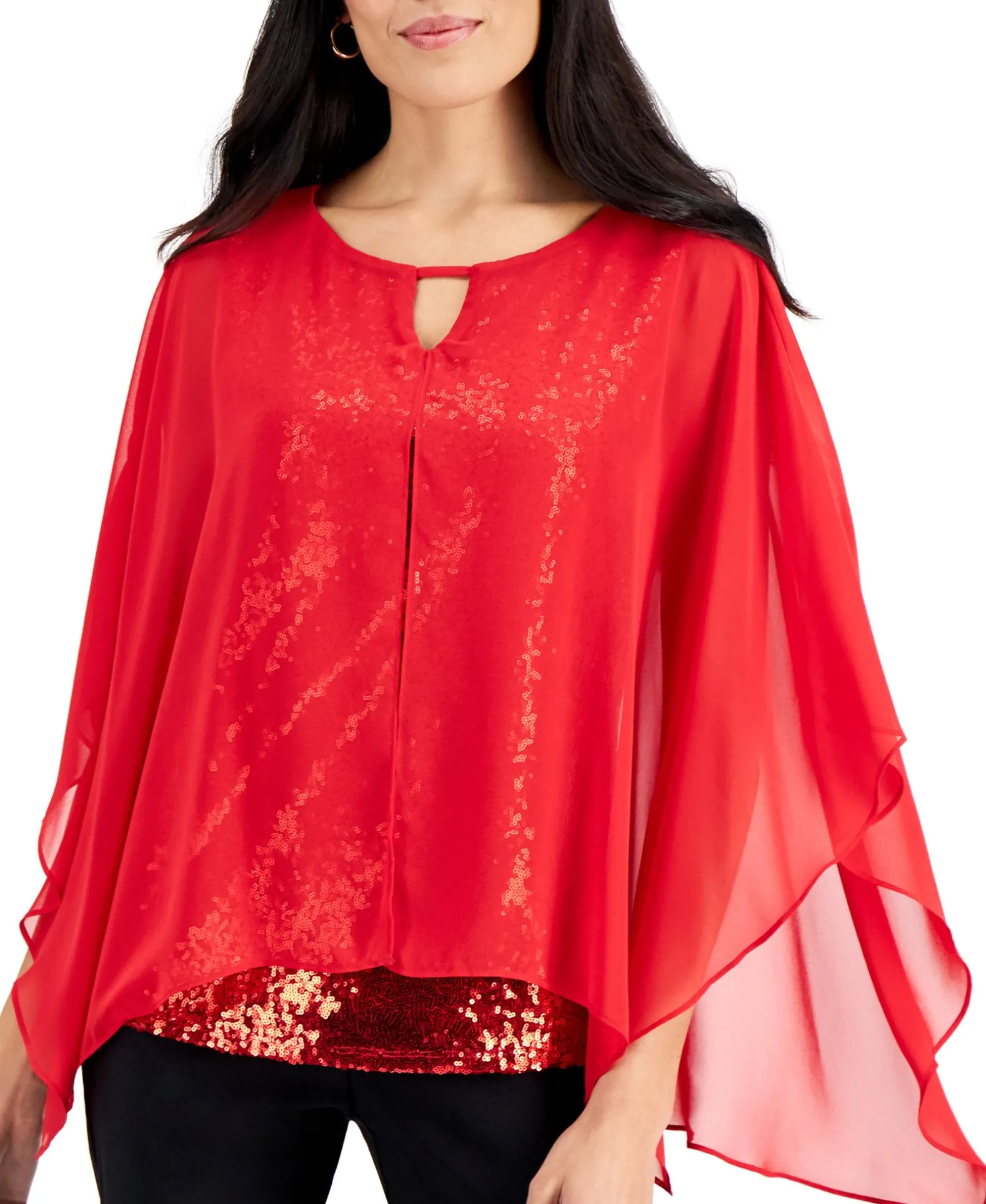 Get Ready For Date Night With This Head-Turning Top From JM Collection. It’s The Perfect Mix Of Sparkle And Sheer, Flowy Fabric.