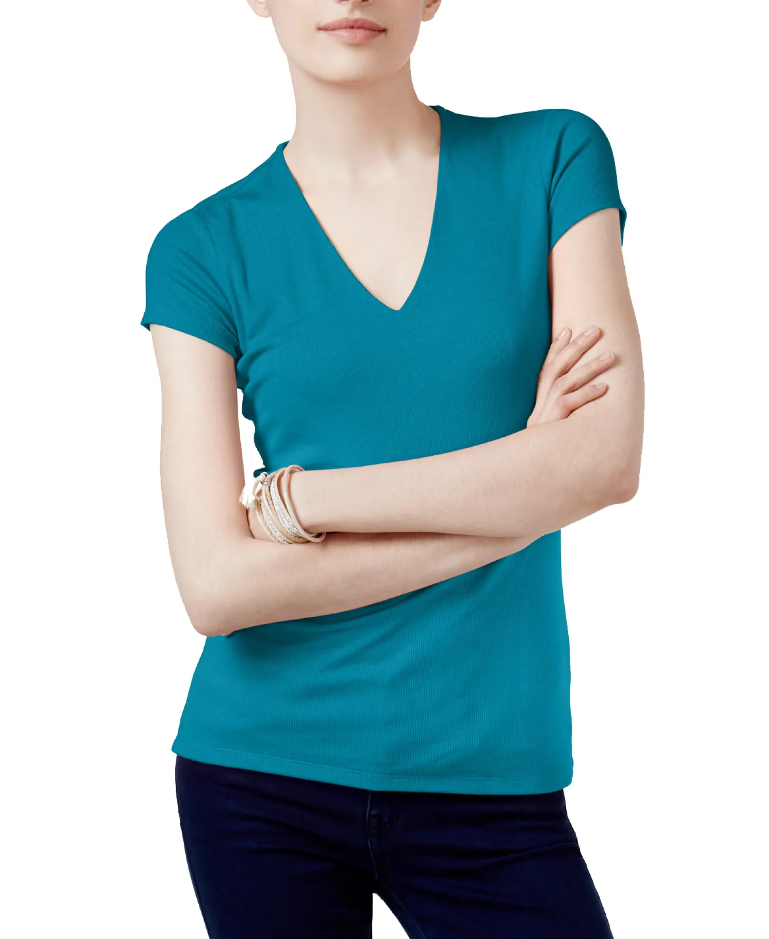A year-round essential, this ribbed V-neck top from INC International Concepts was made for work or play.