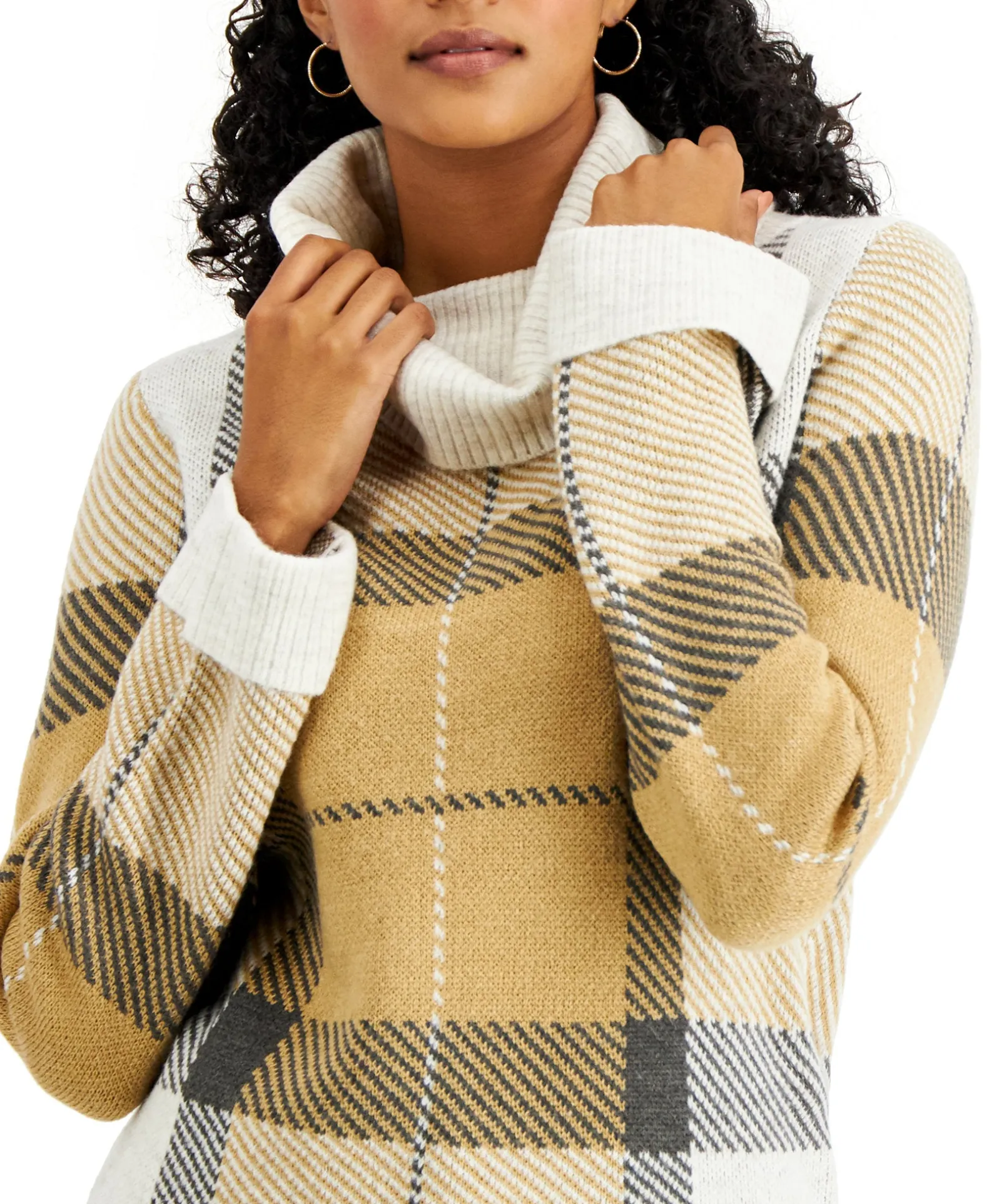 A Cowlneck Caps Oversized Plaid, Bringing A Fresh Look To This Relaxed Charter Club Sweater.