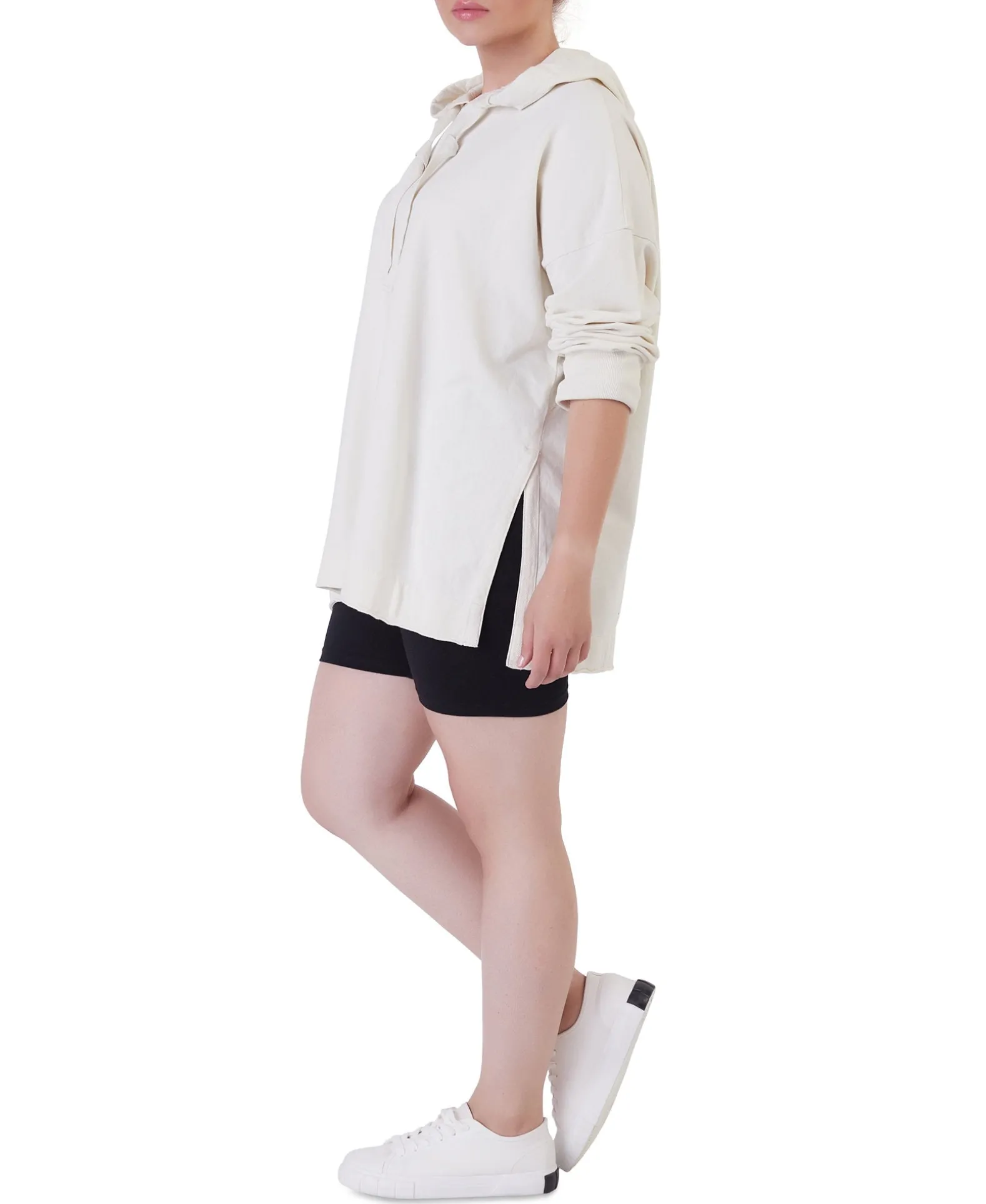 Seriously Cozy And Definitely Stylish, This Plus Size Hoodie From Black Tape Features Side Slits With Ribbon Ties And An Oversized Fit.