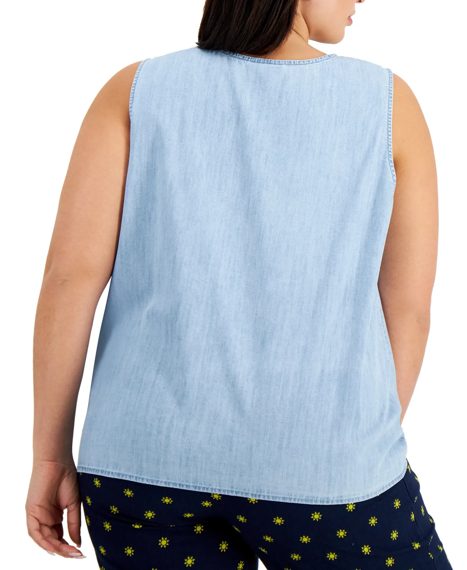 Style & Co’s Classic Chambray Design In A Sleeveless Silhouette Is The Perfect Pull-On And Go Stylish Top You Need.