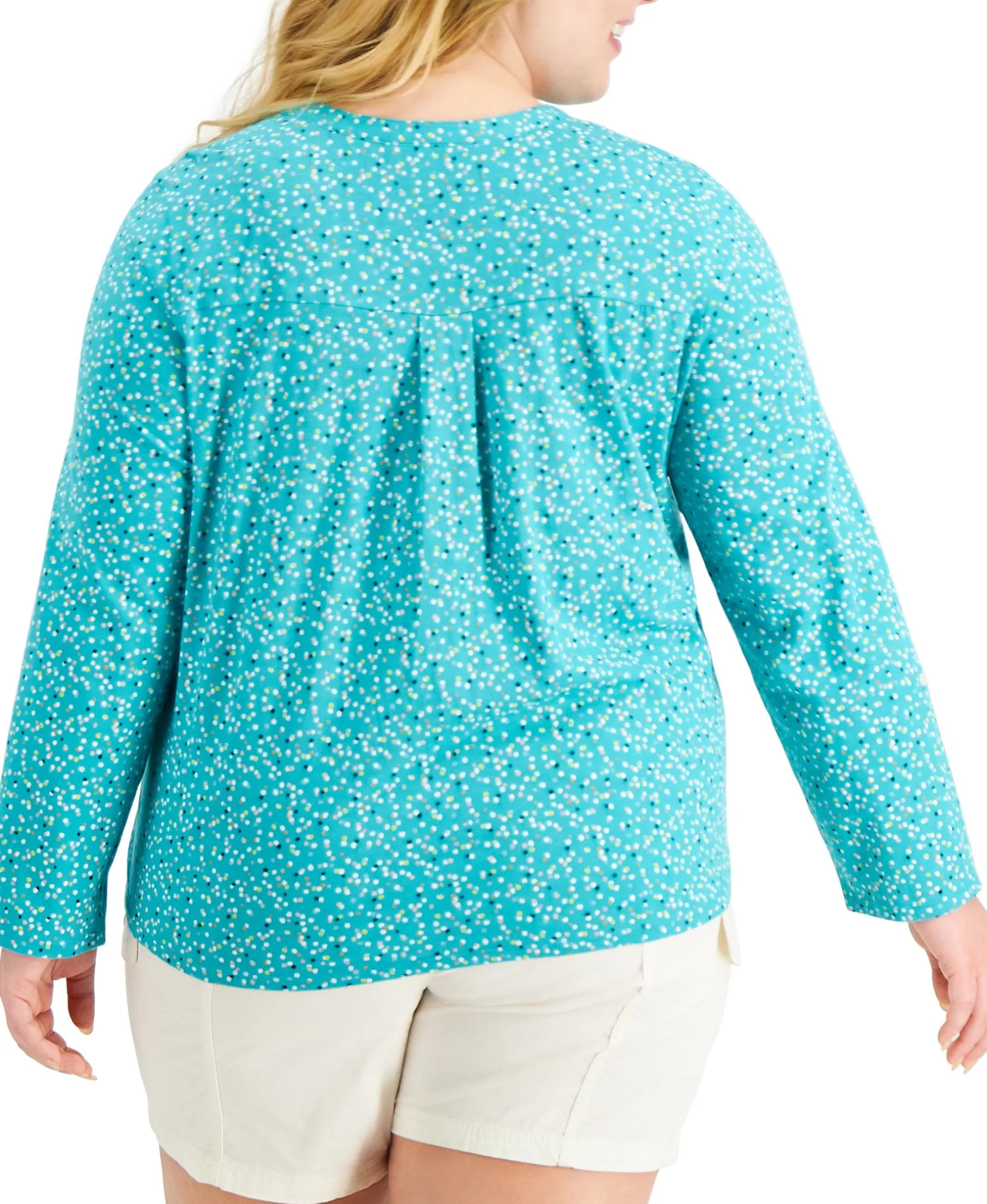 Style & Co’s Plus Size Henley-Inspired Top Is Designed Entirely In Printed Cotton And Finished With Roll-Tab Sleeves.