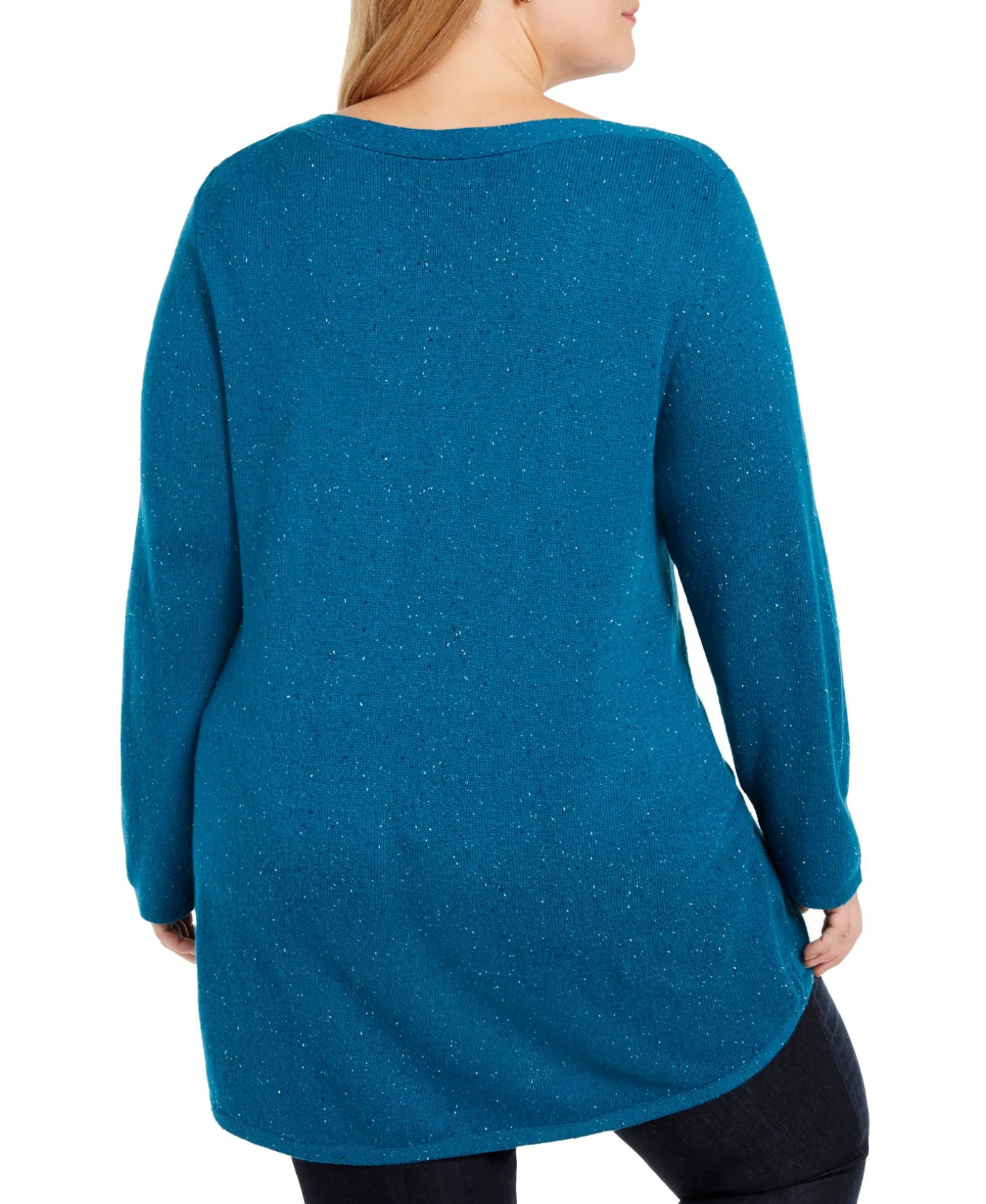 Layer This Plus Size Sweater Over Leggings And You’ll Be Looking As Fab As You Are Comfy. This Karen Scott Top Shines With A Curved Tunic-Length Hem.