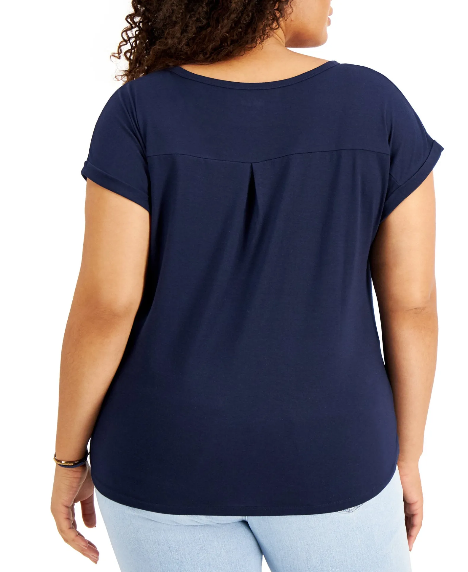 Feel And Look Completely At Ease In This Cuffed-Sleeve Plus Size Top From Style & Co, Featuring A Relaxed Fit.