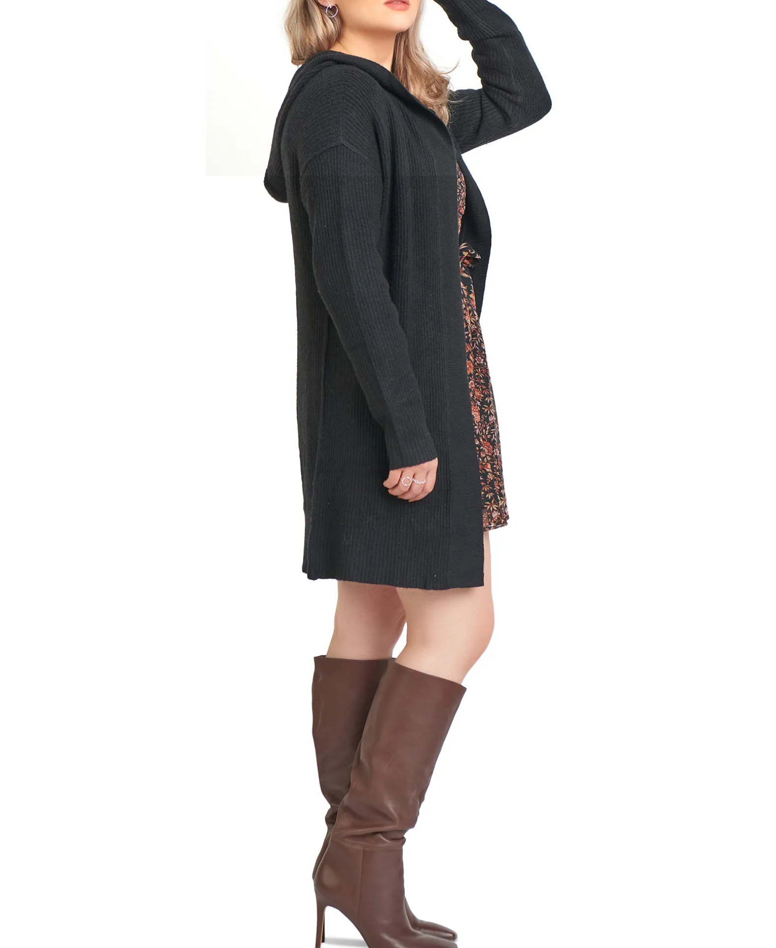 Black Tape Brings Dimension And Texture To Your Look With This Plus Size Open Cardigan With An Attached Hood.