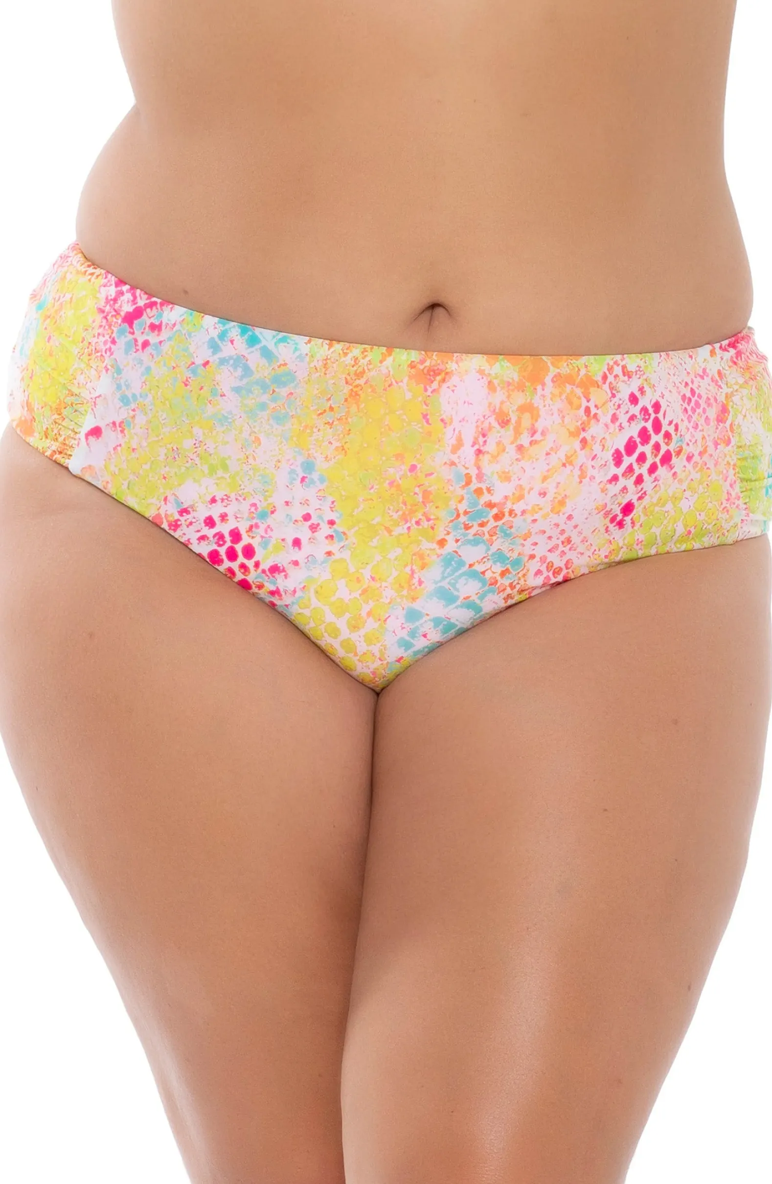 Becca ETC Brightens Your Beach Look With These Plus Size Bikini Bottoms, A Vibrantly Printed Design Finished With Flattering Shirred Sides.