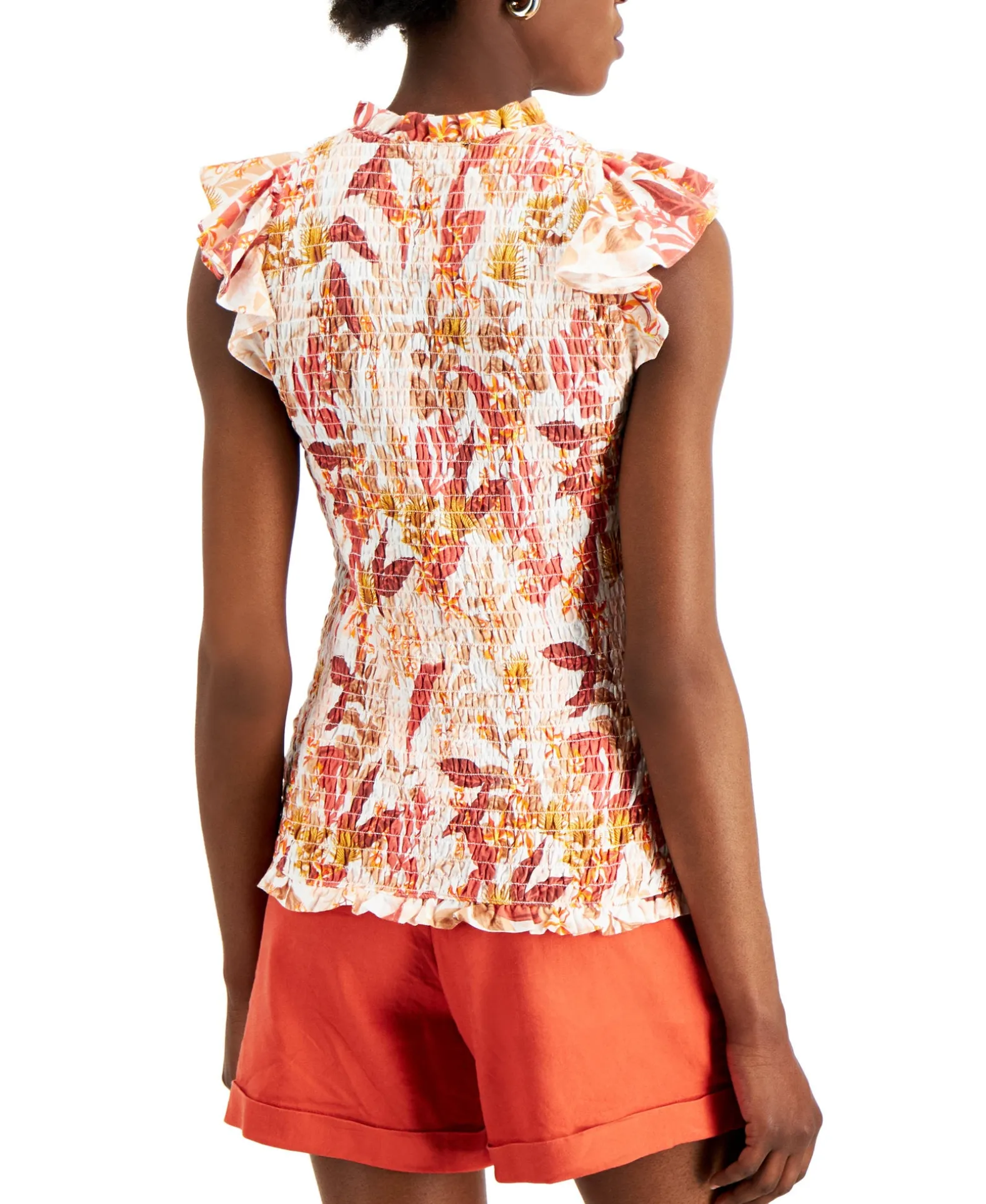 Decorated With A Sweet Print And Romantic Ruffles, Stylish Smocking Gives This Pretty Plus Size INC International Concepts® Top A Fitted Silhouette That Looks Fabulous With Jeans And Skirts.