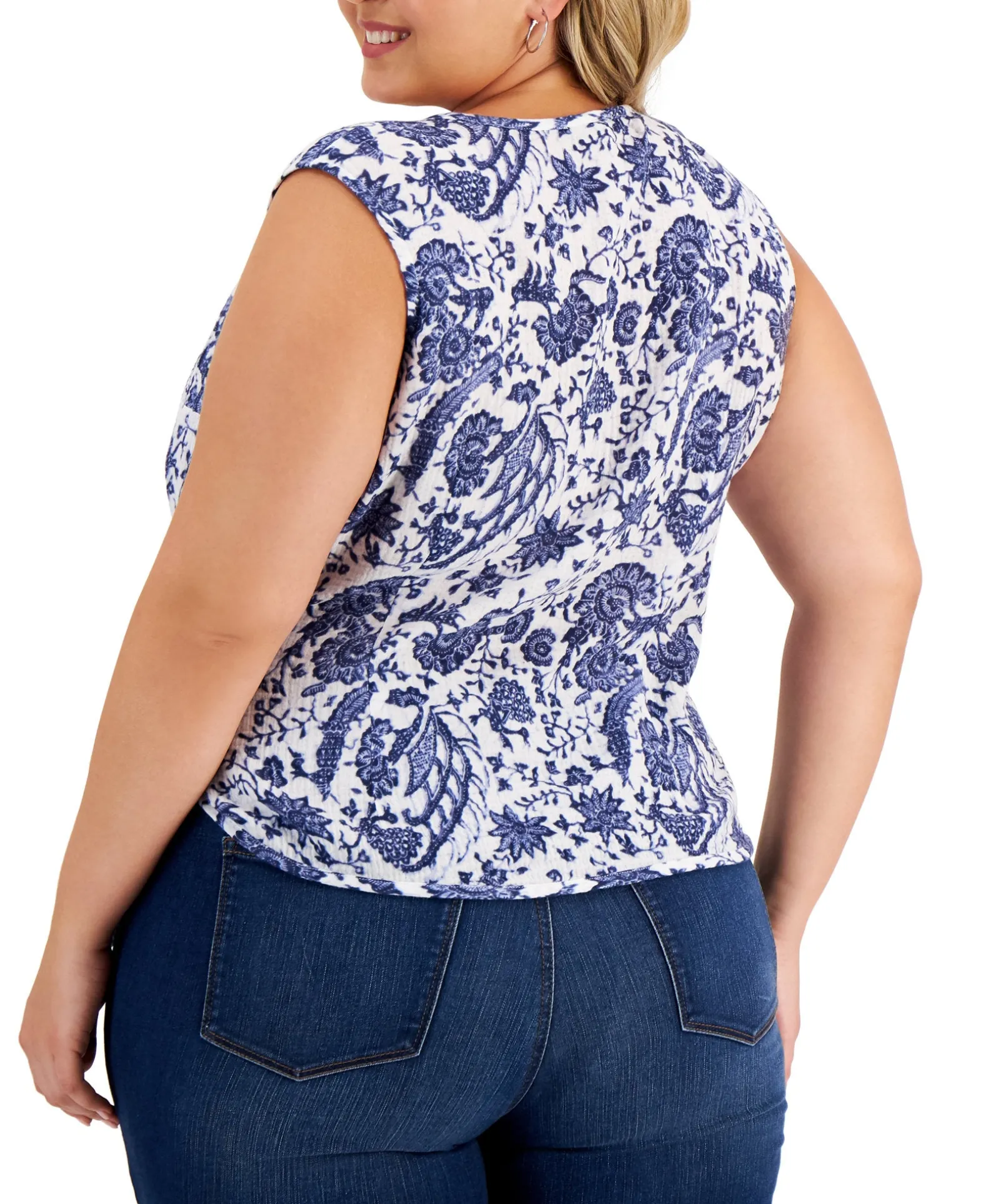 Printed Cotton-Gauze Fabric Adds Pattern, Color And Texture To Plus Size Sleeveless Top From INC International Concepts®.