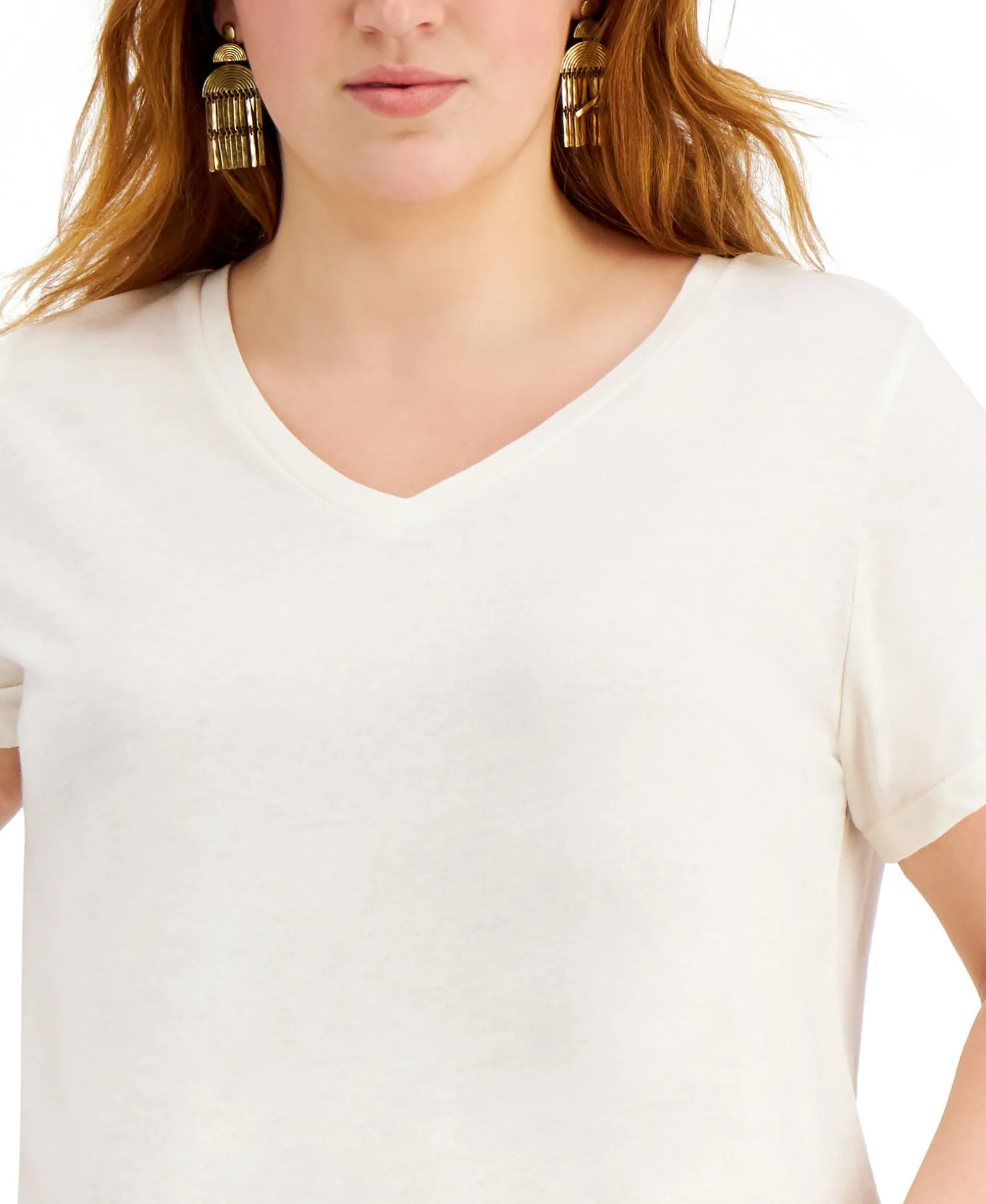 A Flattering V-Neck Frames A Versatile Go-To Look With This Plus Size Burnout T-Shirt From Style & Co.