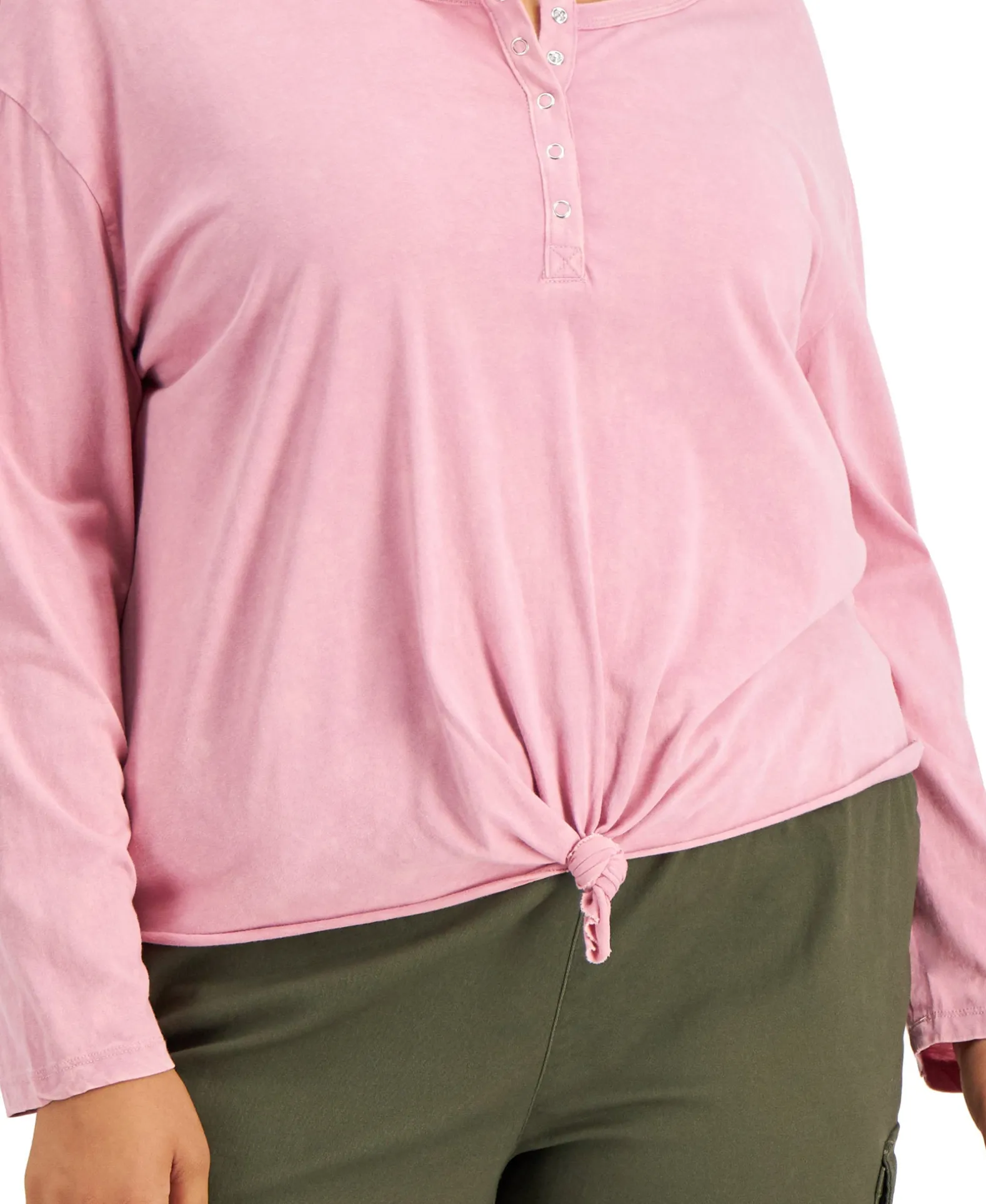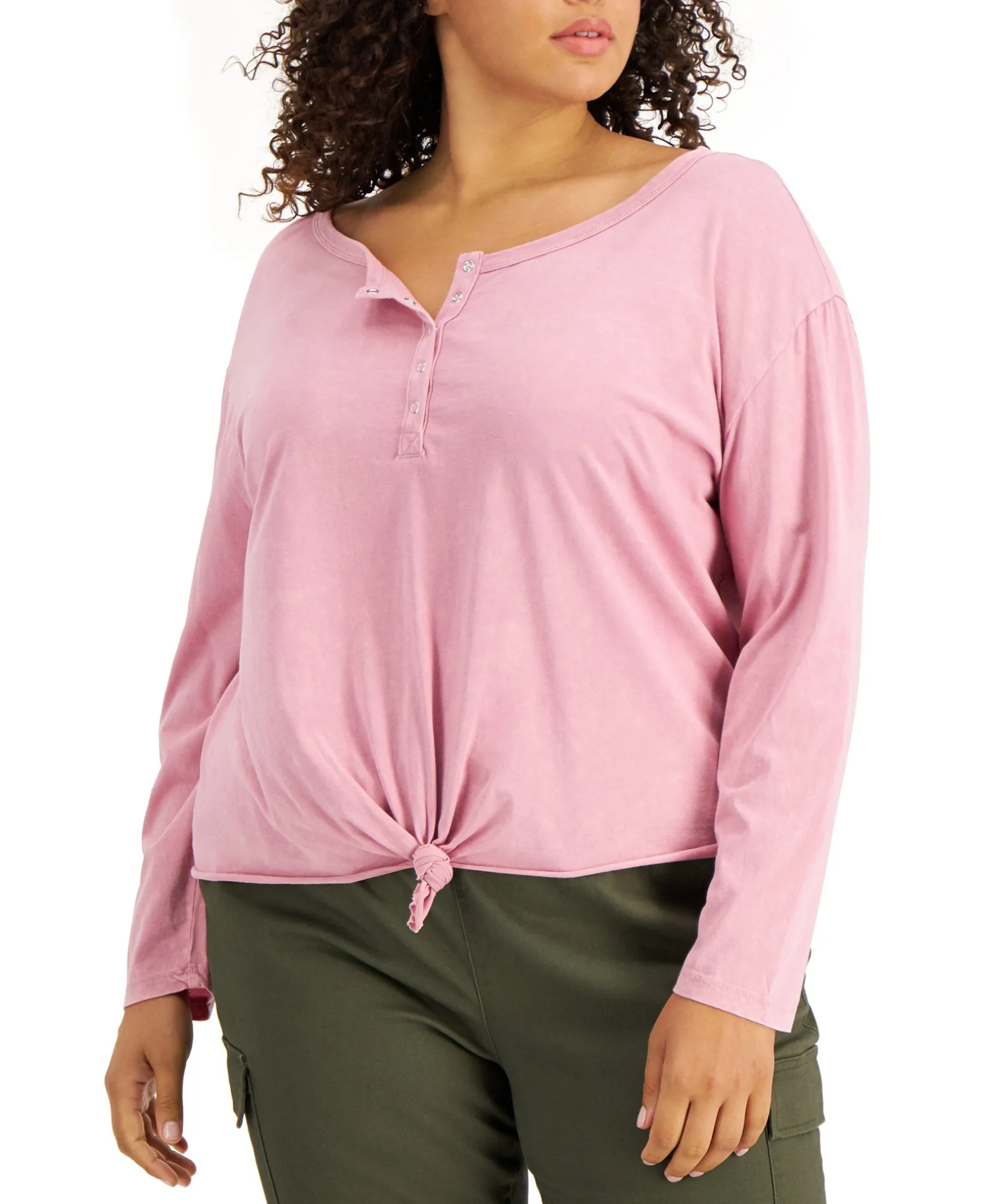 Own Your Look Every Day Of The Week In This Plus-Size Henley Top From Rebellious, Tied To Perfection At The Front Hem.
