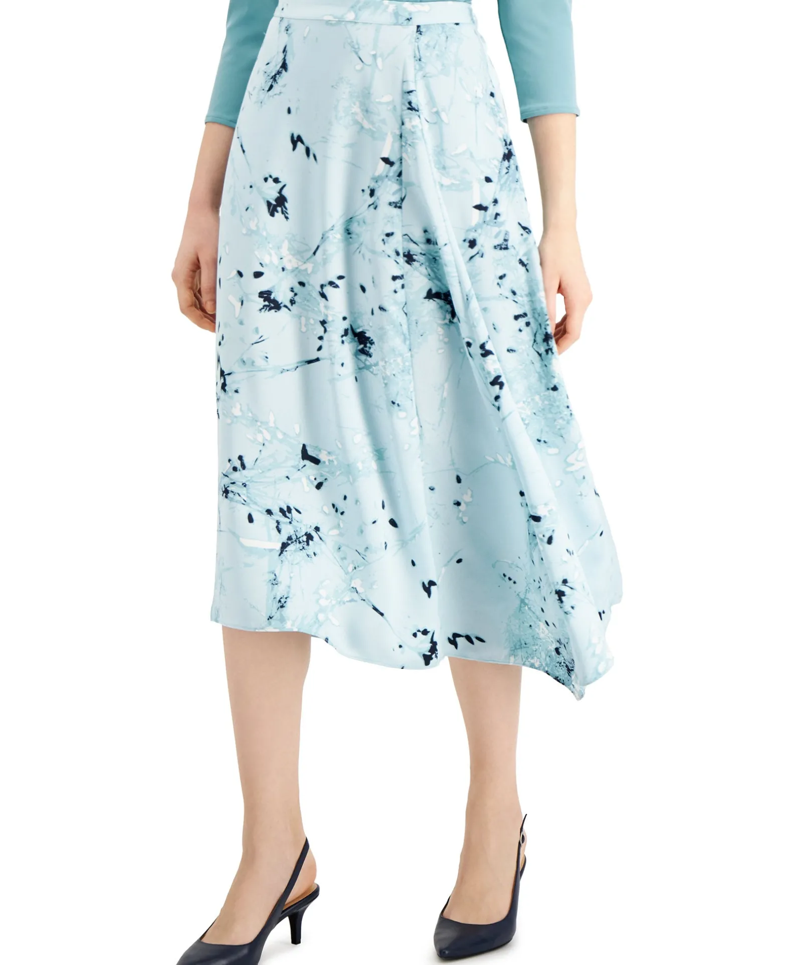 Soft And Romantic, This A-Line Skirt From Alfani Features A Delicate Floral Print On Satiny Fabric, Finished With A Handkerchief Hem Accent For A Floating, Dreamy Effect.