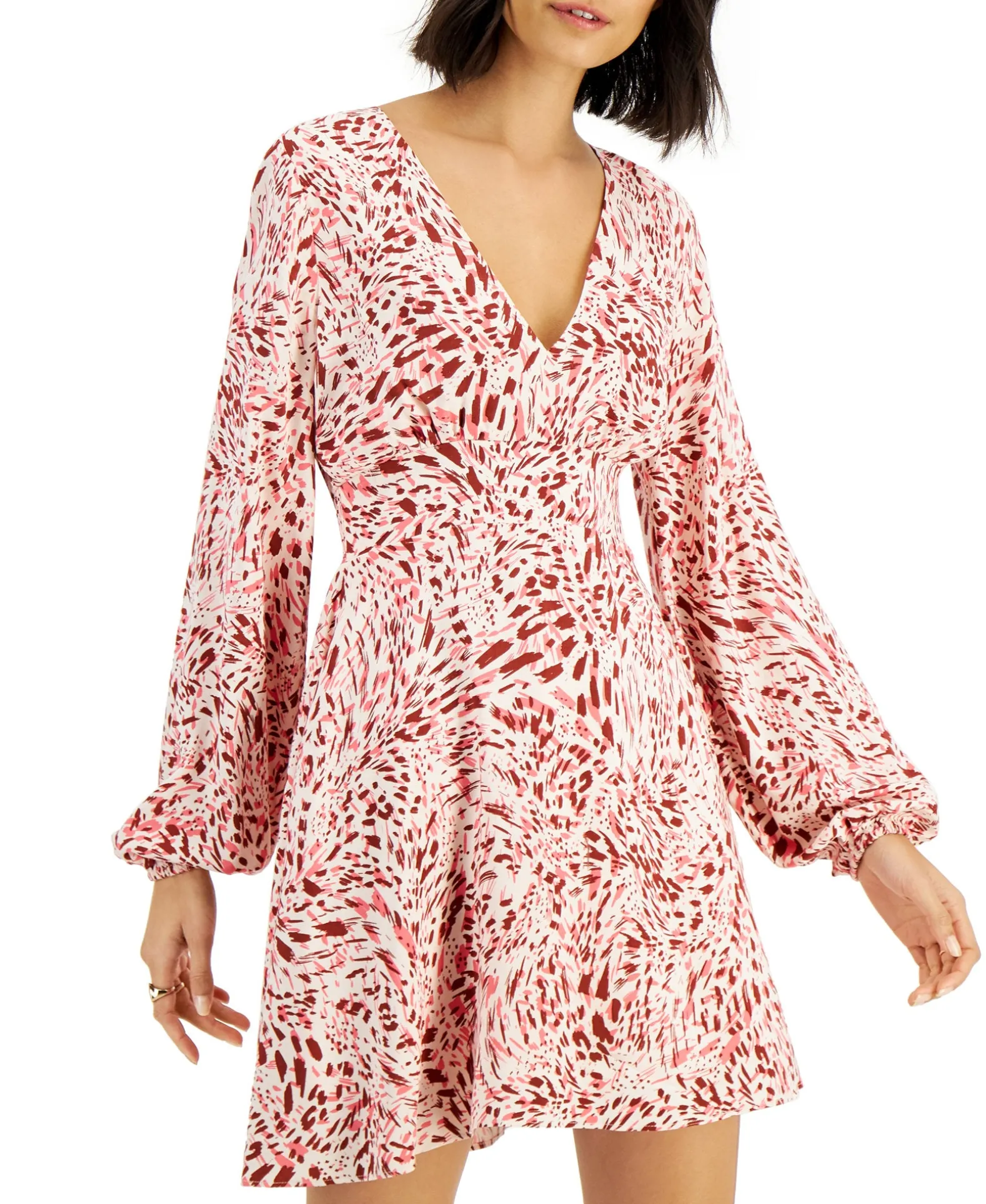 Be A Show Stopper With Bar III’s V-Neck Mini Dress, Featuring Balloon Sleeves For An Elegant And Flowy Look.