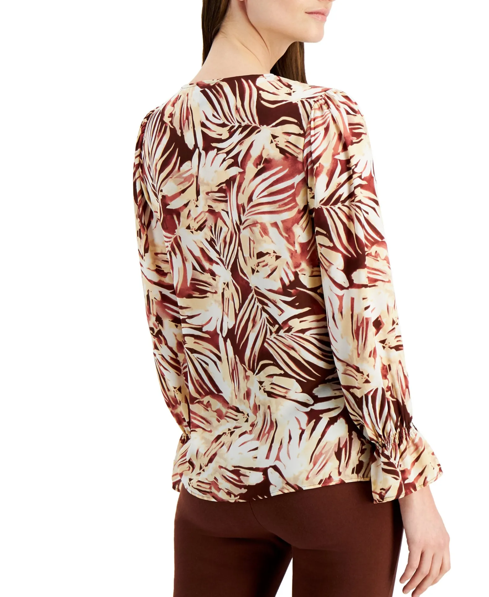 A Bold Print In Sleek Tones Updates This Top From Alfani, A Stylish New Look Capped With Ruffles At The Cuffs.