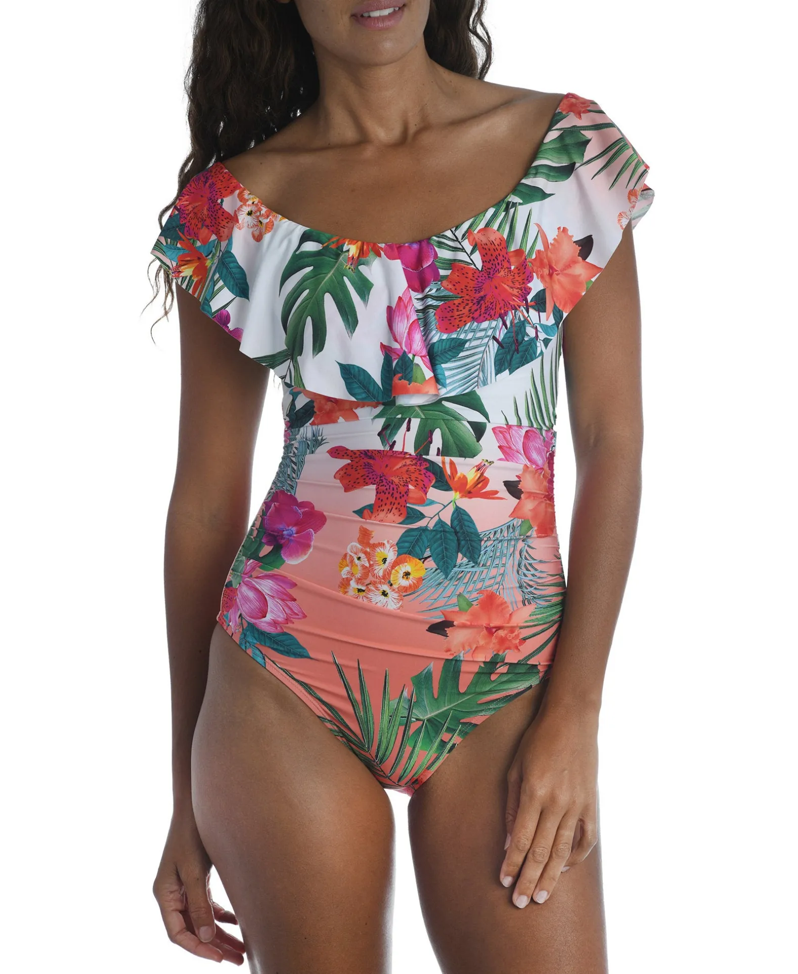 On Off-The-Shoulder Neckline Lends A Little Romance To This Printed One-Piece Swimsuit From La Blanca.