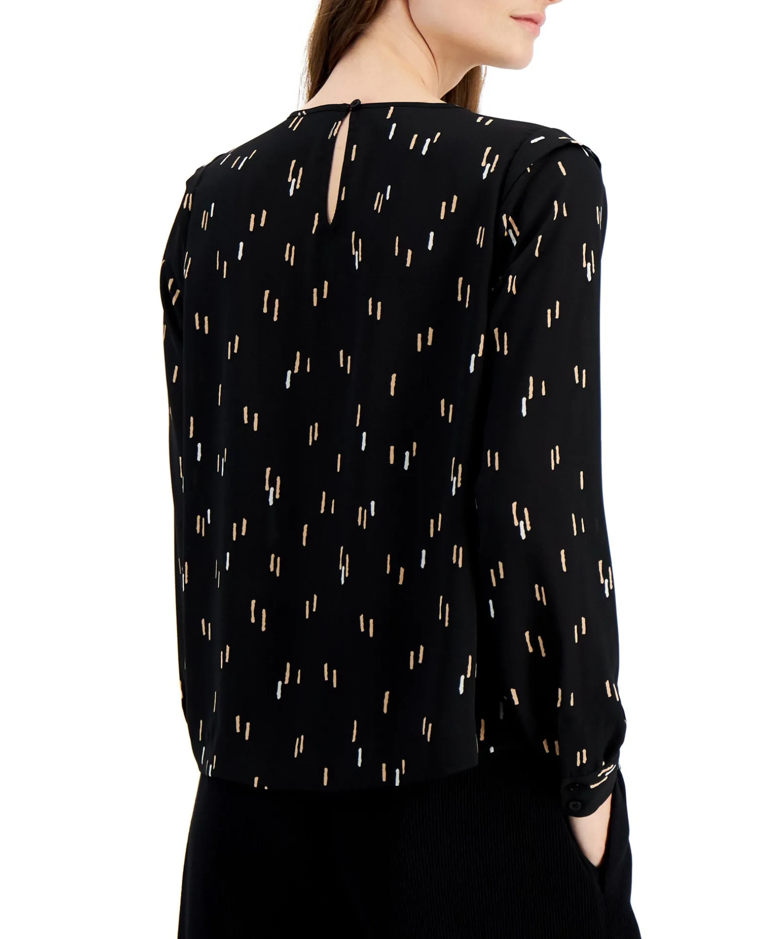 A Unique Dashed Print Decorates Alfani’s Chic Long-Sleeve Top While Pretty Pleats Add A Polished Pop.