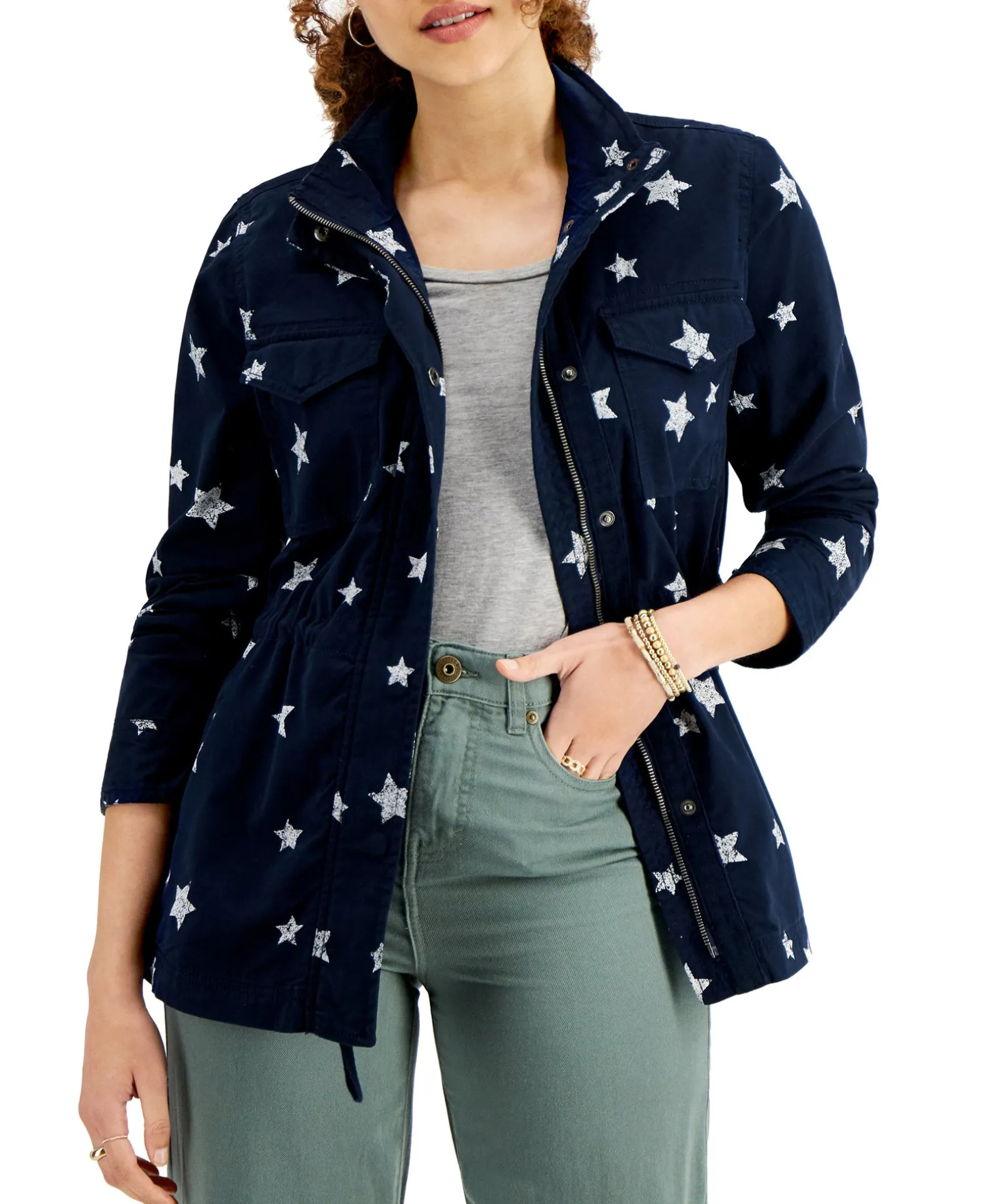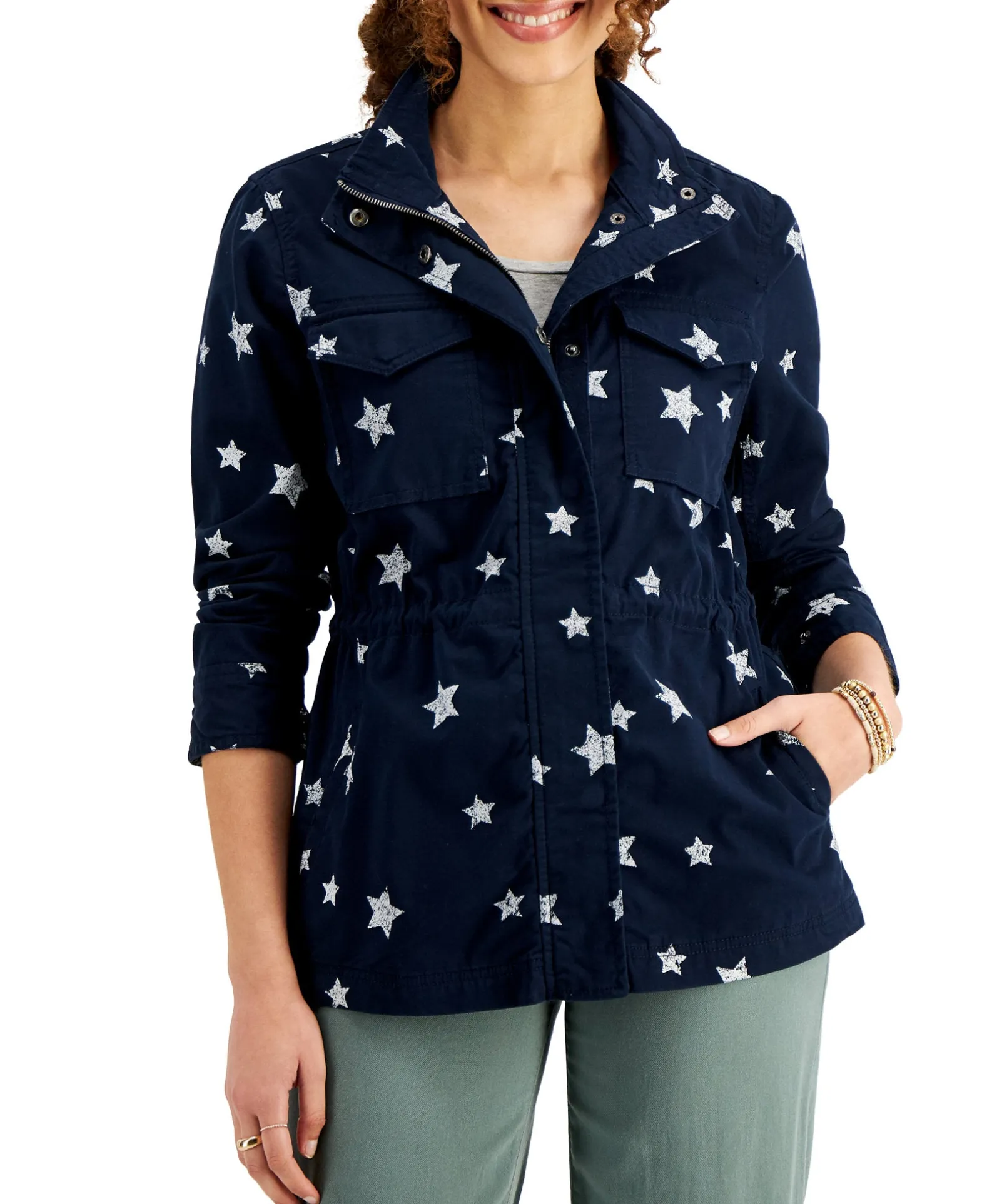 Style & Co Keeps You Covered In Style With This Twill, Zip-Front Jacket, Featuring An Internal Drawstring And Zipper And Button-Front Closures.