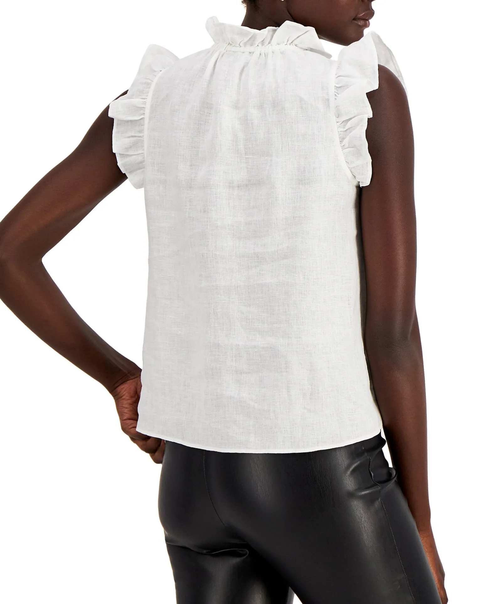 Styled From Light-And-Airy Linen, This Top By INC International Concepts® Is Ultra-Femme With Its Ruffled Neckline And Breezy Silhouette.